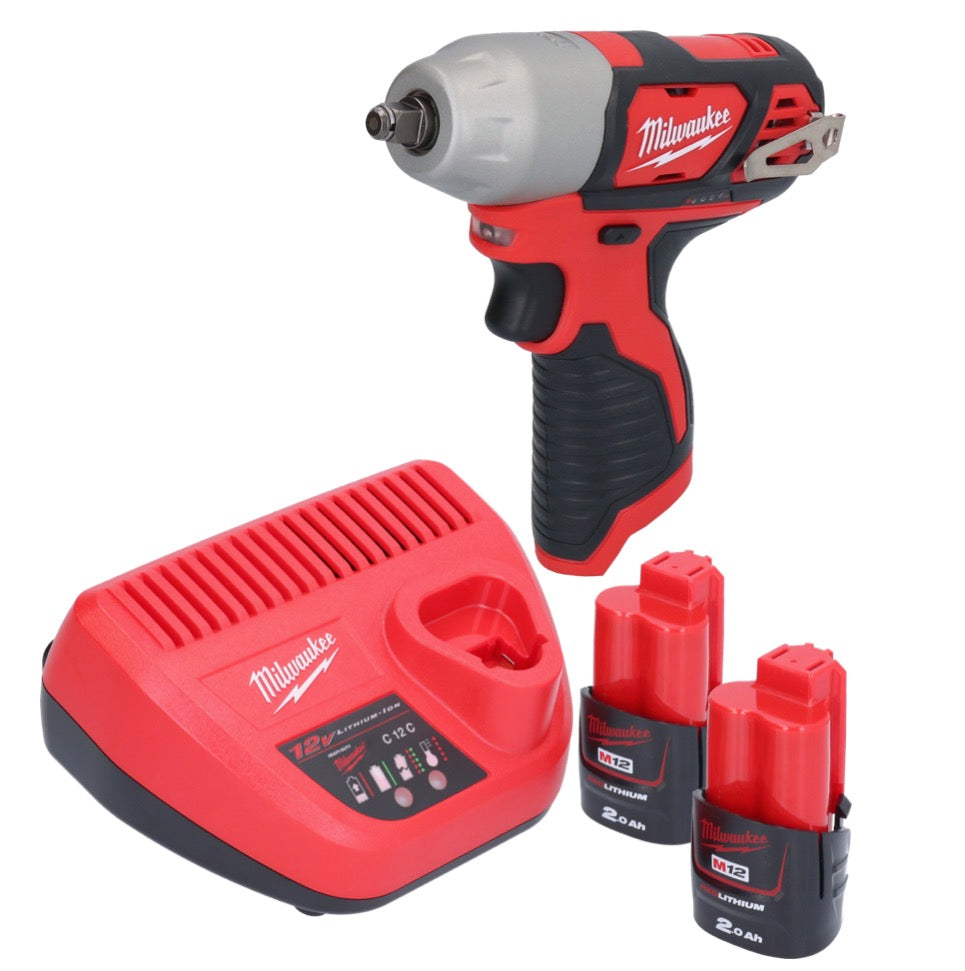 Milwaukee M12 BIW38-202 Clé à choc sans fil 12 V 135 Nm 3/8 + 2x batterie 2,0 Ah + chargeur