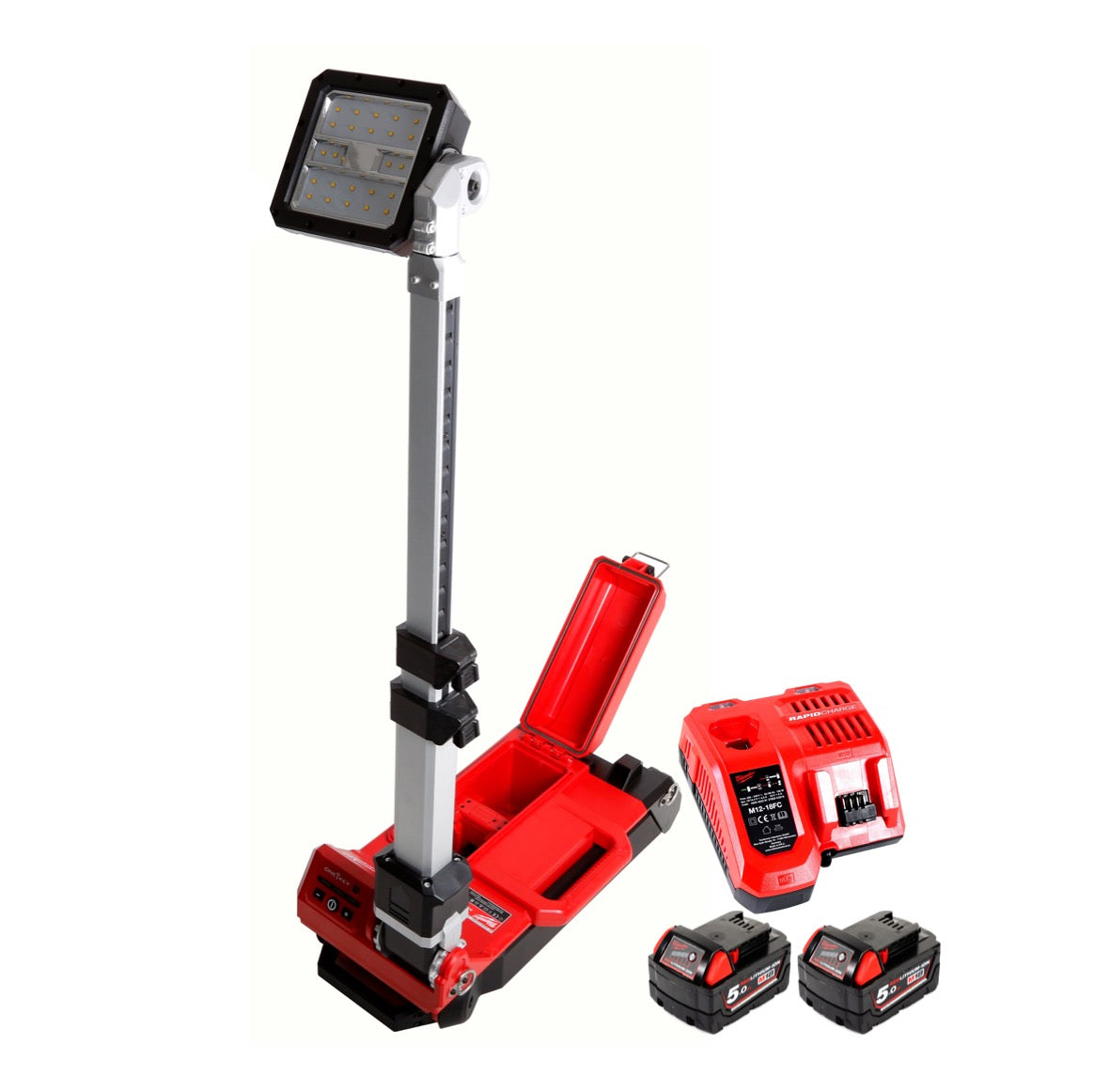 Milwaukee M18 ONERSAL-502C Projecteur de chantier LED ONE-KEY sans fil 18 V Li-Ion + 2x Batteries 5,0 Ah + 1x Chargeur