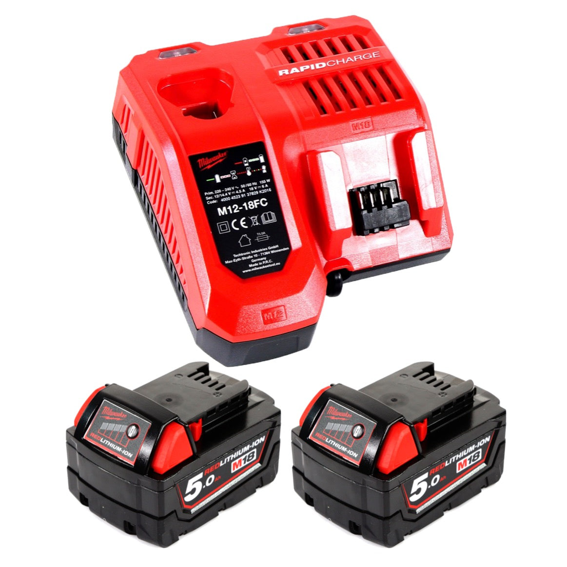 - 2x Batteries Milwaukee M18 B5 18 V 5,0 Ah  Li-Ion