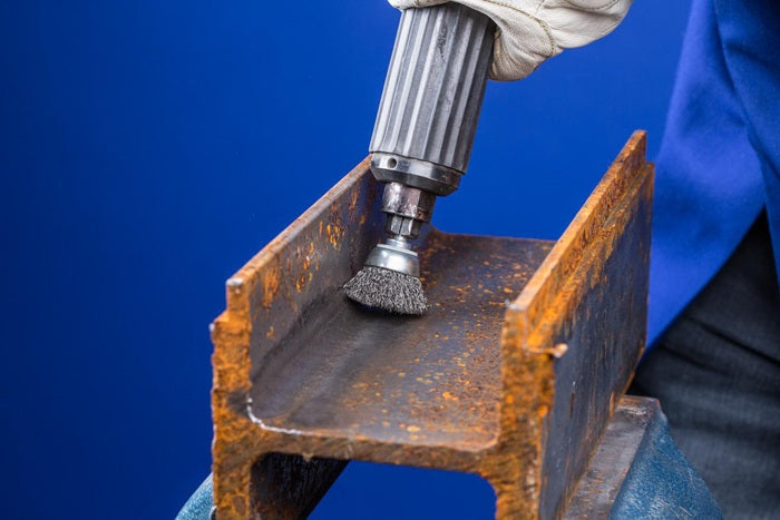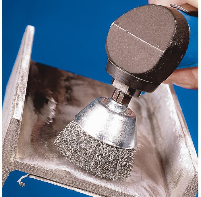 universel pour le nettoyage, le dérouillage et le lissage ainsi que l'élimination de la corrosion et des peintures - convient pour le brossage de grandes surfaces planes et facilement accessibles - avec corps de brosse recouvert de plastique. Le fil d'acier présente une résistance élevée à la traction et à la flexion alternée - garantit une usure optimale du fil ainsi qu'une durée de vie élevée, même dans les applications de brossage extrêmes Le fil d'acier résiste à des températures allant jusqu'à 300 °C. Ø de la tige 6 mm