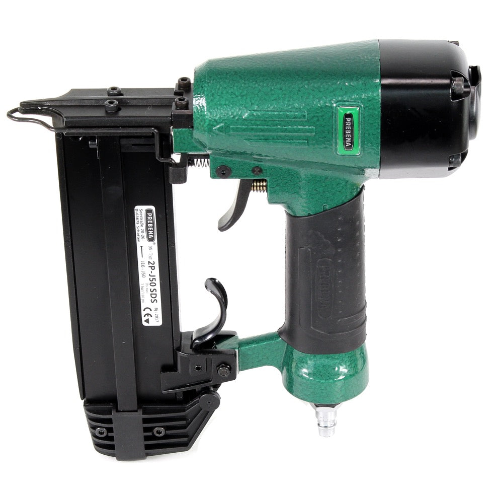 Le cloueur pneumatique pour pointes Prebena 2P-J50SDS est compact et léger.  Le cloueur pneumatique est en métal pour plus de robustesse et il convient aux pointes du type J 16 - 50 mm. La machine est équipée d'un chargeur latéral, d'un réglage de profondeur, d'un dispositif de sécurité de déclenchement et d'un silencieux. De plus, vous pouvez ajuster la pression d'air selon vos besoins. Le Prebena 2P-J50SDS est universel pour bricoleurs dans les domaines de, encadrement de tableaux, listes de soubassement, liteaux de cadres et de vitrage.