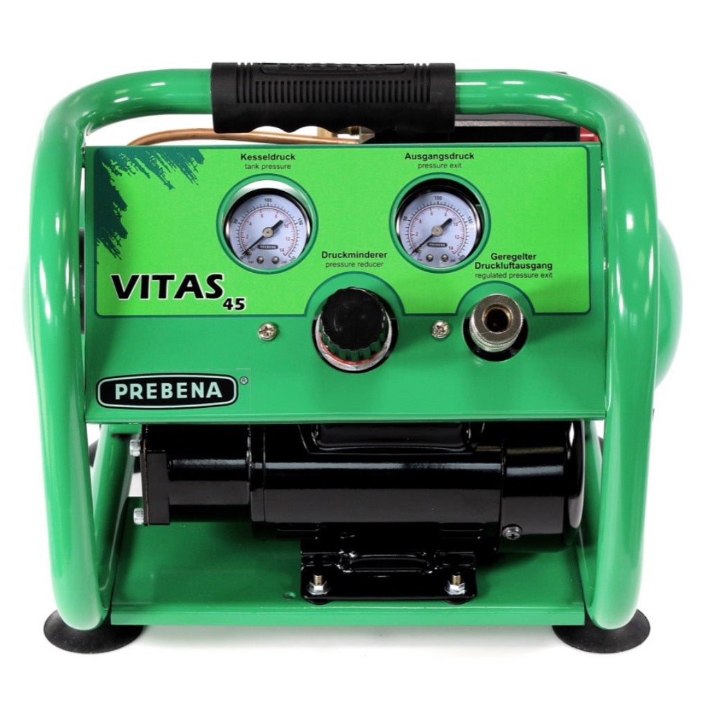 Le cloueur pneumatique pour pointes Prebena 2XR-A16 est compact et léger. Le cloueur pneumatique est en métal pour plus de robustesse et il convient aux pointes du type J 16 - 50 mm. La machine est équipée d'un chargeur latéral, d'un réglage de profondeur, d'un dispositif de sécurité de déclenchement et d'un silencieux. De plus, vous pouvez ajuster la pression d'air selon vos besoins. Le Prebena 2XR-A16 est universel pour bricoleurs dans les domaines de, encadrement de tableaux, listes de soubassement, liteaux de cadres et de vitrage. Ajouté à ceci est notre compresseur puissant et compact Prebena VITAS 45. La machine convainc par son puissant moteur de 230 V, sa capacité de remplissage de 24 l/min et de sa capacité d'aspiration de 41/min. Le compresseur comporte un manomètre métallique pour la pression de la cuve, un manomètre métallique pour la pression de service et un réducteur de pression. En raison de son faible poids le Prebena VITAS 45 est facile à transporter. La poignée caoutchoutée possède un revêtement antidérapant. Les pieds solides en caoutchouc garantissent une bonne prise aux soles. La machine étant sans huile, il n'est donc jamais nécessaire de la changer.