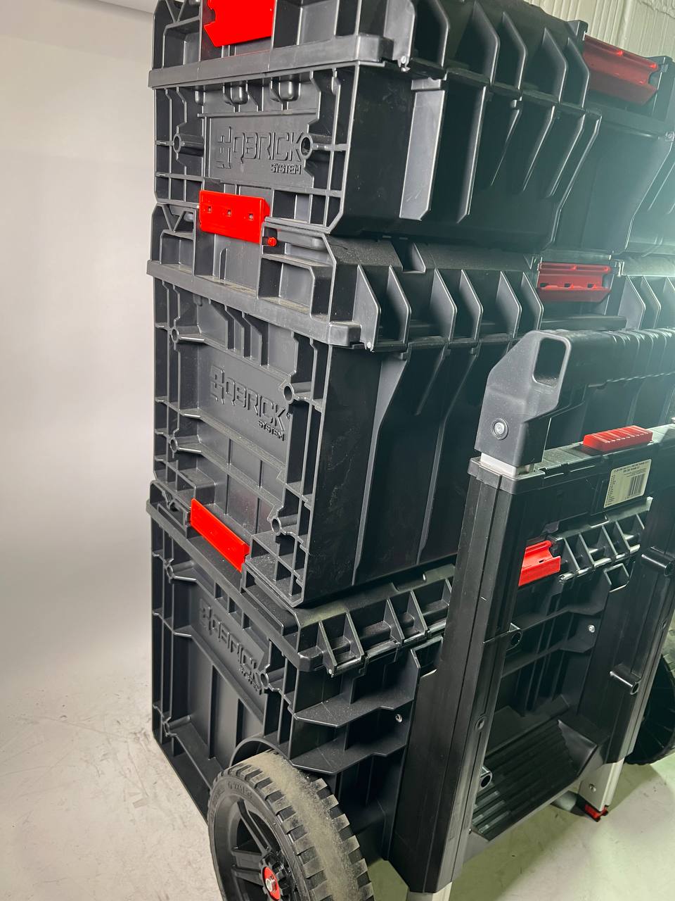 El juego de maletines de herramientas Qbrick combina tres maletines de herramientas de alta calidad de la línea de productos Qbrick System ONE y ofrece una solución completa para todas las necesidades de transporte y organización de herramientas. El ONE 200 2.0 Technik combina las características de un contenedor de herramientas con las de un organizador. Con divisores ajustables y cubos extraíbles, el usuario puede componer su combinación óptima de herramientas. Las juntas con certificación IP66 proporcionan una protección total, mientras que los raíles de montaje de aluminio permiten utilizarlo como plataforma de trabajo. Los adaptadores QS PRO Connect suministrados permiten adaptar el sistema a otros módulos de la línea PRO. El ONE 350 2.0 Technik es un gran maletín de herramientas con una capacidad de 38 litros, ideal para herramientas eléctricas y manuales. Equipado con juntas flexibles (IP66) y compartimentos ajustables, ofrece una protección y organización óptimas. El innovador raíl de montaje de aluminio permite utilizarlo como plataforma de trabajo, apoyado en una robusta estructura que soporta hasta 50 kg. Los adaptadores QS PRO Connect permiten una integración perfecta con otros módulos de la línea PRO. El Cart 2.0 proporciona una base robusta para el conjunto, con una impresionante capacidad de carga de hasta 100 kg y una generosa capacidad de 52 litros. Equipado con un asa telescópica extraíble y ruedas grandes y silenciosas, transportar incluso las herramientas más pesadas no supone ningún esfuerzo. Dos separadores y estantes ajustables permiten una organización flexible. La protección con certificación IP66 garantiza la seguridad en todas las condiciones.