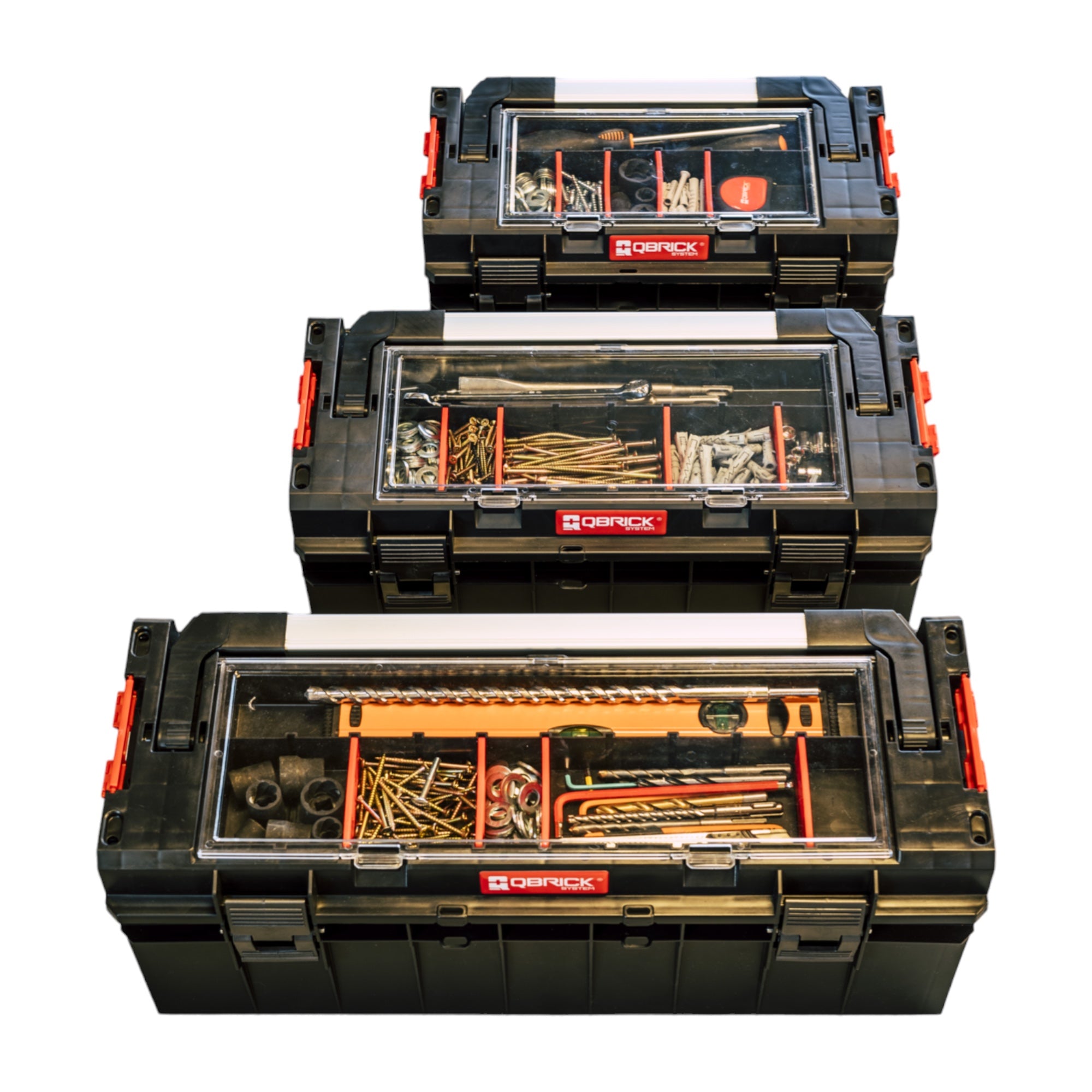PRO 500 est le plus petit représentant d'une nouvelle génération de boîtes à outils professionnelles. La ligne PRO se caractérise par la fonction unique dans cette catégorie de relier deux boîtes à l'aide de connecteurs en polyamide et d'un joint flexible qui assure une protection totale contre la pénétration de l'eau et de la poussière. L'organisateur Expert, situé dans le couvercle de la boîte, vous permet d'organiser aussi bien les petites que les longues fournitures d'atelier grâce à des cloisons réglables. Une solide poignée en aluminium, des fermetures en polyamide et des connecteurs latéraux, ainsi qu'une glissière en polycarbonate de l'organiseur garantissent une utilisation durable sans risque.