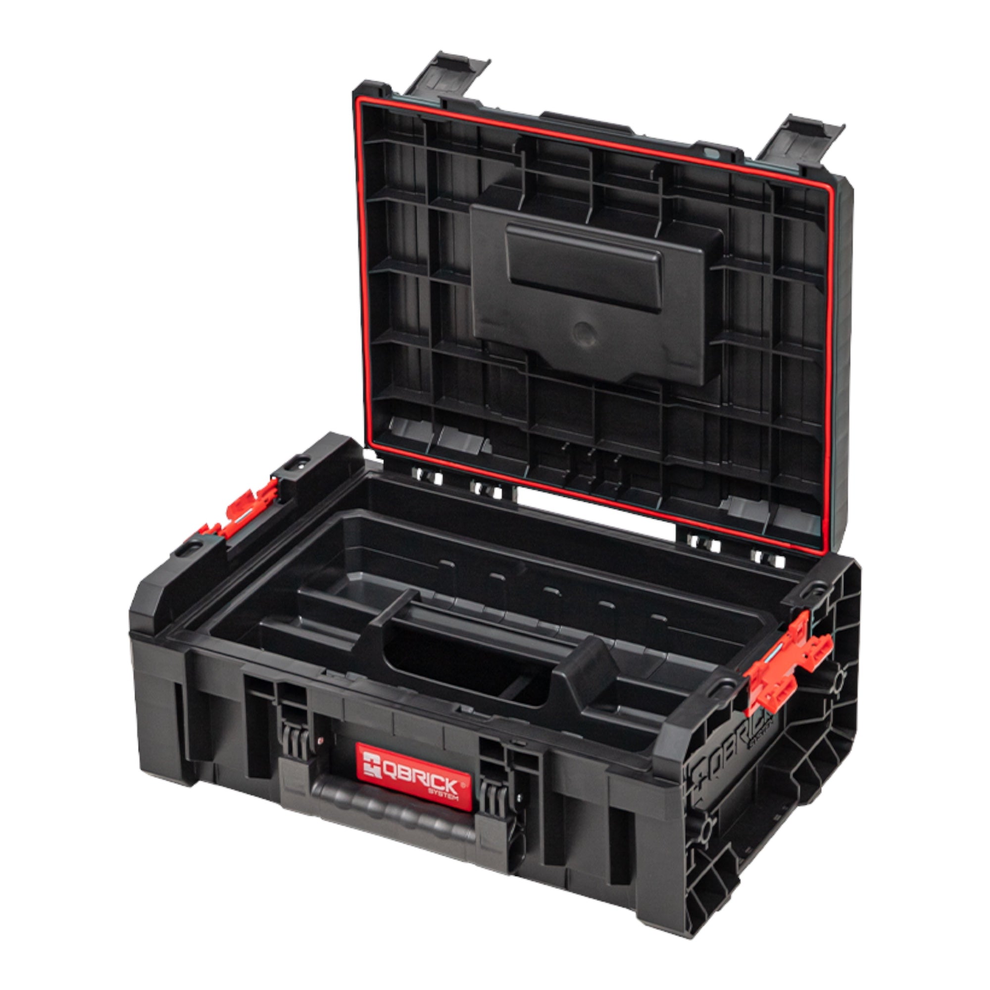 Qbrick System PRO Technician Case - est un coffre modulaire de taille moyenne de la ligne PRO, déjà équipé en standard d'un plateau spacieux et d'un joint flexible intégré dans le couvercle, ce qui garantit sa grande résistance à la pénétration de poussière et d'eau. La taille et la structure modulaire du coffre pour techniciens en font un coffre de rangement et de transport parfait pour une grande variété d'outils électriques.