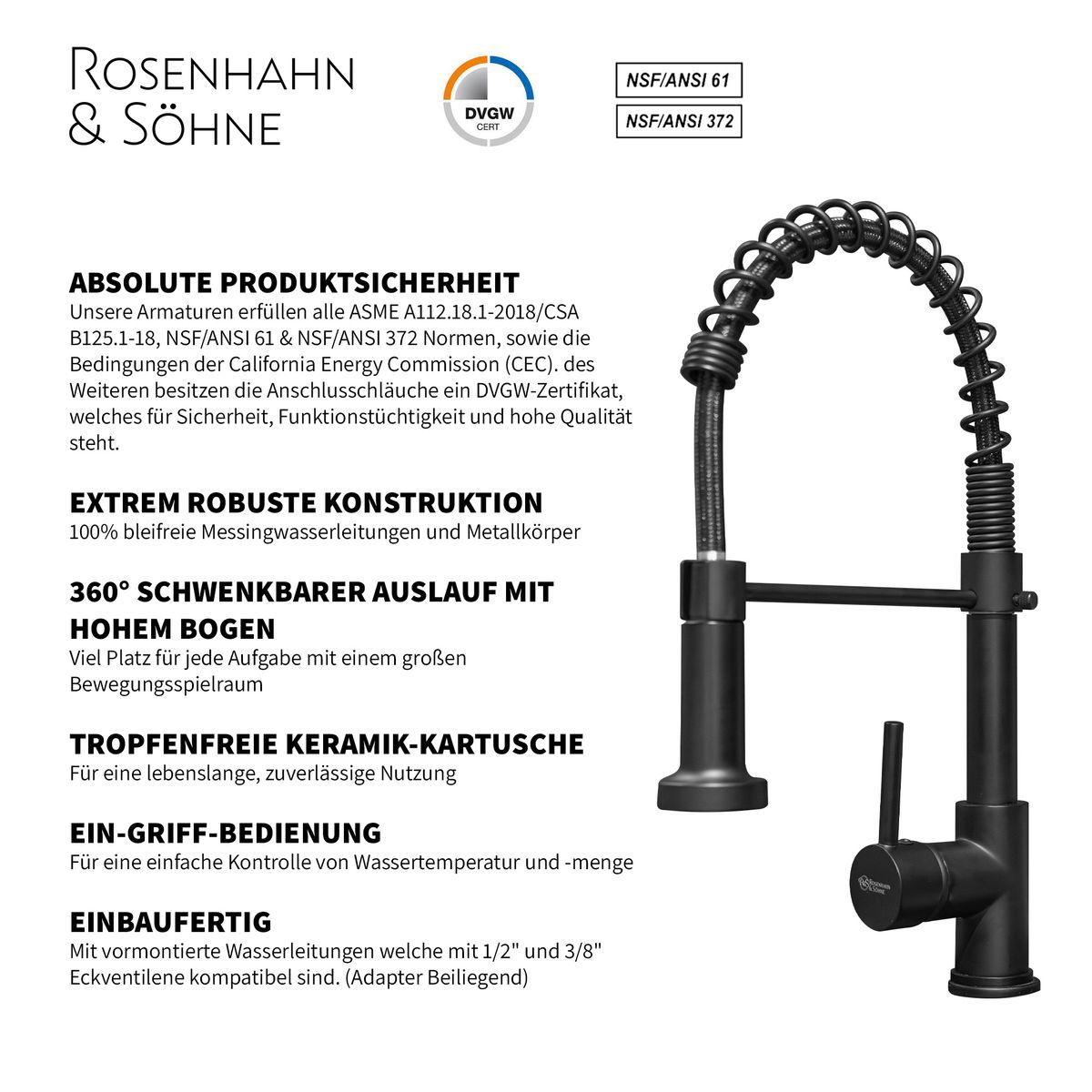 Rosenhahn & Söhne Sylt 200 Robinet de cuisine avec douchette en noir mat