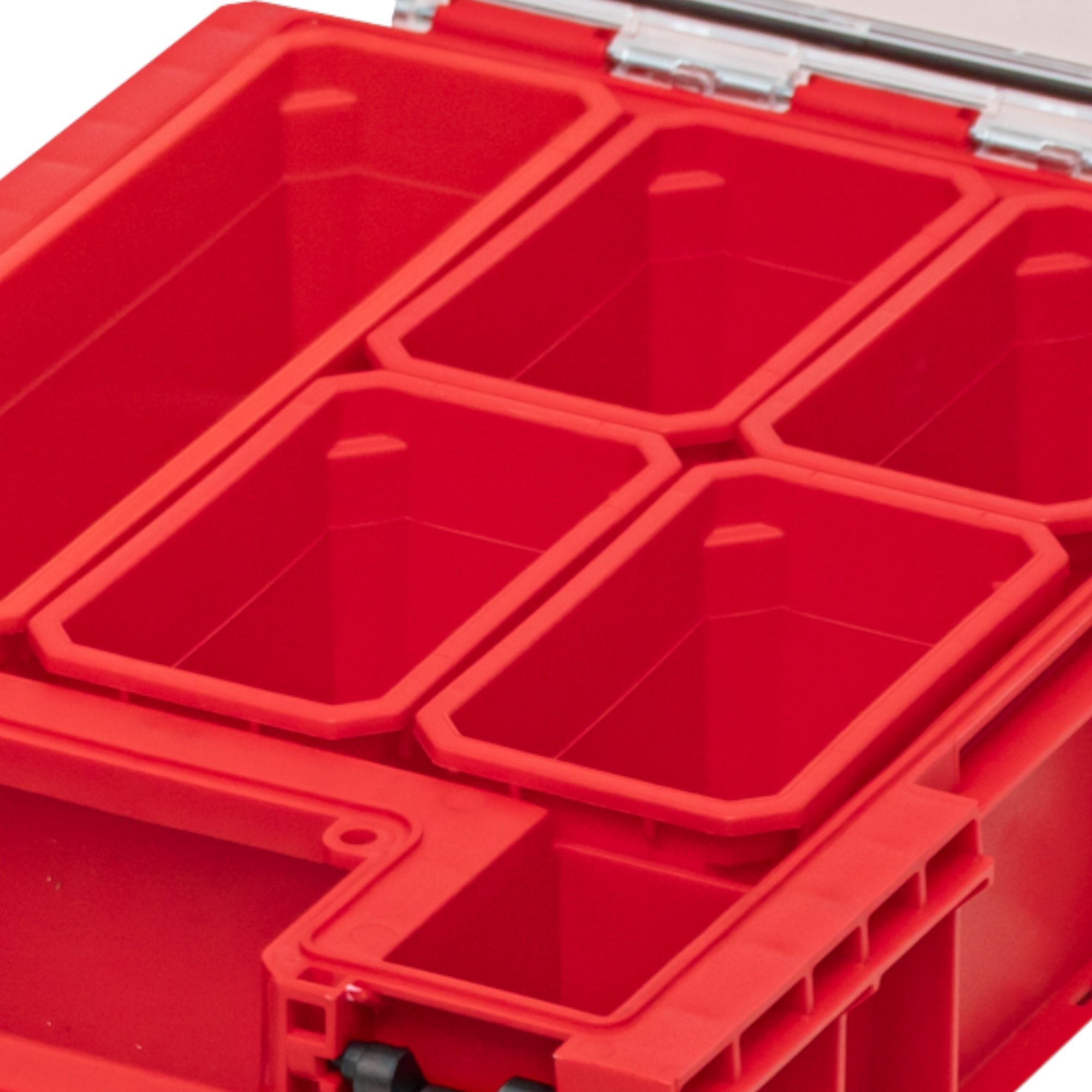 Le Toolbrothers RHINO XXL Organizer (hauteur M+) est l'équilibre parfait entre espace de rangement et compacité dans la série XXL. Il est optimal pour le rangement d'accessoires ou de toutes sortes de petites pièces pour un accès rapide partout et à tout moment. L'organiseur est doté de 4 petits compartiments spacieux et d'un autre compartiment long - tous peuvent être disposés comme tu le souhaites. Tu as besoin de plus de place pour un outil ? Pas de problème, tu peux aussi retirer complètement les compartiments - l'organiseur RHINO est ainsi le bon choix pour toutes les applications. Le RHINO peut être combiné avec toutes les autres boîtes et organiseurs de la gamme XXL et convient parfaitement pour être posé sur une caisse à outils RHINO XXL. Pour la mobilité, tu peux bien sûr aussi le coupler directement à notre chariot, tu auras ainsi ton atelier complet sur roues ! La gamme RHINO XL est fabriquée en plastique ultra résistant qui se caractérise par une résistance exceptionnelle aux dommages mécaniques, même à des températures inférieures à 0° - conçue pour résister à toutes les intempéries. Le RHINO est entièrement protégé contre la poussière et l'eau selon la classe de protection IP66.