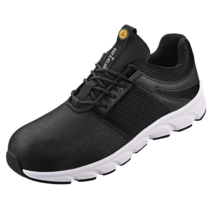 selon EN ISO 20345 - S1P ESD SRA - largeur de chaussure : 10,5 - tige en textile - bord de tige ergonomique et rembourré en matière synthétique - languette cousue et rembourrée en textile - fermeture par œillets textiles extensibles - semelle intérieure anatomique amovible - embout en fibre de verre et semelle intermédiaire antiperforation en tissu - semelle extérieure antistatique, résistante aux huiles et aux acides, antidérapante et super légère en EVA/caoutchouc - semelle extérieure sportive - entièrement sans métal - domaine d'utilisation : entrepôts, expédition, industrie, etc. sur demande également disponible de la taille 36 à la taille 48