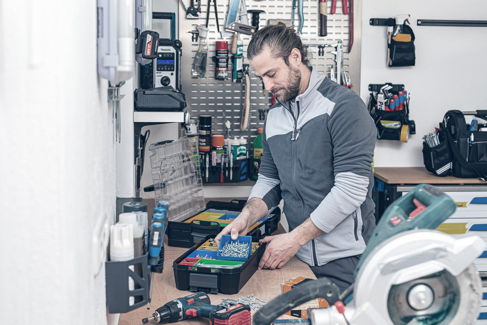 Grazie alla griglia di stoccaggio integrata, il ClickTray offre anche la possibilità di installare diversi set di scatole, garantendo un'organizzazione e un ordinamento ottimali di piccoli pezzi e accessori. Il ClickTray M 74 ha una lunghezza di 440 mm e una larghezza di 231 mm, che lo rendono un compagno compatto ma spazioso. È stato progettato per essere robusto e durevole, per resistere alle esigenze dell'uso quotidiano.
