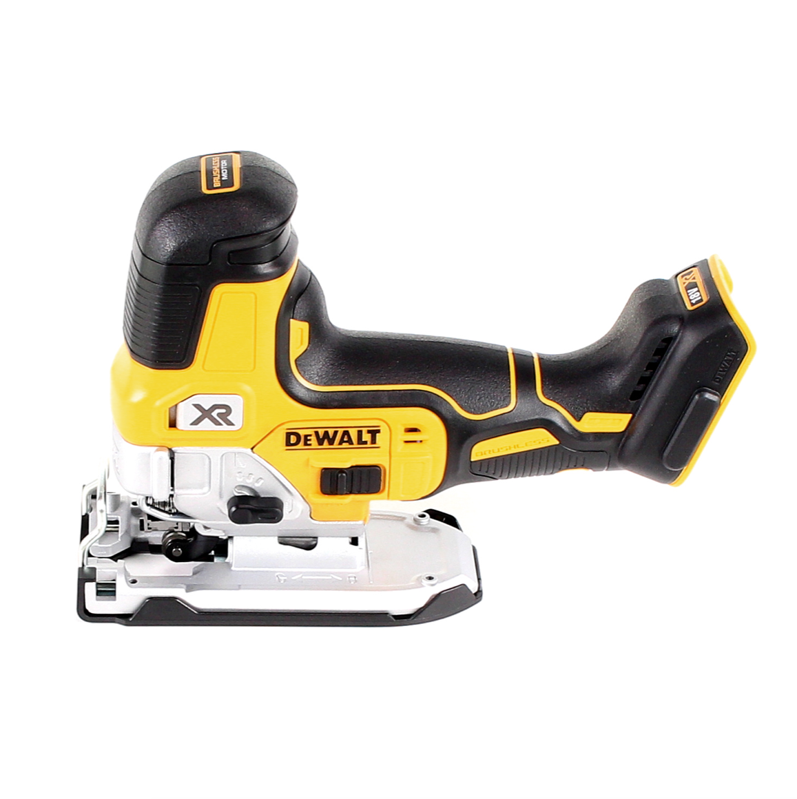 La sierra de calar inalámbrica incluye un gatillo de velocidad variable y un interruptor de bloqueo. Esto permite realizar cortes rápidos y controlados y además aumenta la seguridad en el trabajo. Con el ajuste de 4 niveles de la carrera pendular se puede regular la velocidad de corte y adaptarla a la pieza de trabajo correspondiente. La zapata ajustable sin herramientas con cubierta resistente a los arañazos se puede inclinar 45 grados en ambas direcciones. La sierra de calar también incluye un sistema de cambio de hoja sencillo y rápido. El agarre suave proporciona comodidad adicional al usuario y reduce la fatiga del usuario. Además, la sierra incluye una luz de trabajo LED que ayuda con la visibilidad de la línea de corte. Además, el ventilador integrado expulsa el polvo y las virutas de la pieza de trabajo, lo que también mantiene la visión clara. El adaptador de aspiración incluido protege el área de trabajo de la suciedad, de modo que también podrá serrar en zonas sensibles. La potente batería de 3,0 Ah convence por su construcción robusta y su larga durabilidad. La batería viene con la última tecnología de iones de litio. La capacidad de la batería de 3,0 Ah proporciona suficiente energía incluso para trabajos exigentes y la batería también es compatible con todos los dispositivos DeWalt de 18 voltios.