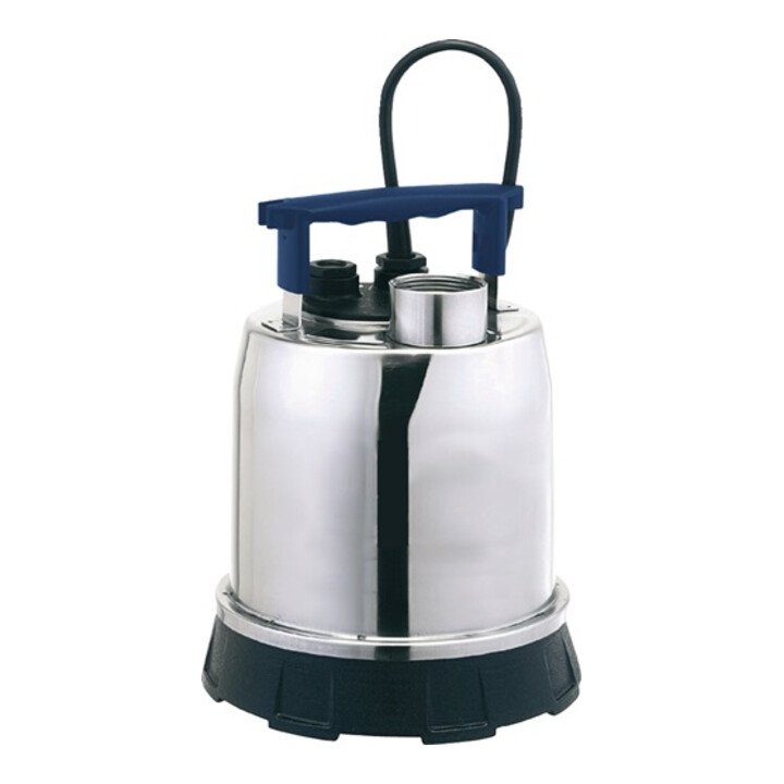 Dispositivo di aspirazione piatto - in acciaio inox - per lo smaltimento di acque reflue con corpi solidi fino a Ø 10 mm - con dispositivo di aspirazione piatto agganciabile fino a 3 mm di livello dell'acqua residua - assolutamente durevole - tutti i componenti principali in acciaio inox - con robusta tenuta meccanica - interruttore termico di protezione integrato - valvola di non ritorno - granulometria con dispositivo di aspirazione piatto max. 3 mm
