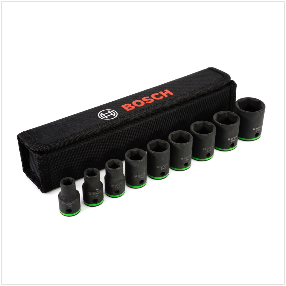 El juego de llaves de vaso de 9 piezas de Bosch se caracteriza por su gran resistencia y la conocida calidad de Bosch. Las llaves de vaso son adecuadas para el uso de alto rendimiento en llaves de impacto con portaherramientas, así como para todo tipo de herramientas manuales con portaherramientas de 1/2". Los insertos se forjan en caliente para conseguir la máxima densidad del material, esto garantiza excelentes grados de dureza, alta resistencia del material y una larga vida útil de los insertos. El juego se suministra en un estuche de transporte compacto y robusto de Bosch con compartimentos intercambiables y de ajuste preciso para cada tuerca.