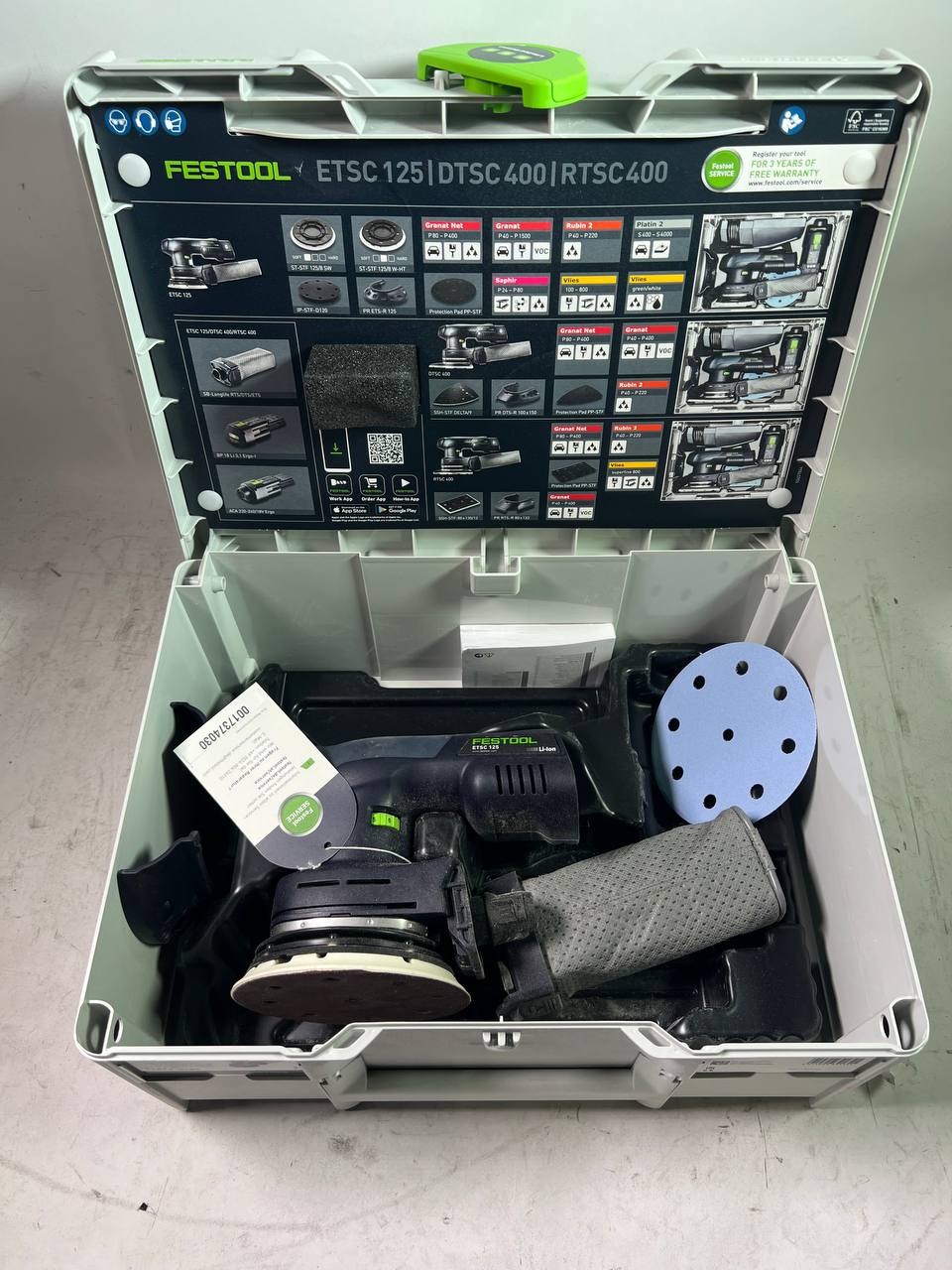 Festool ETSC 125 Basic Levigatrice orbitale a batteria 18V ( 576370 ) + Valigetta Systainer - senza batteria, senza caricabatterie (successore del 201533)