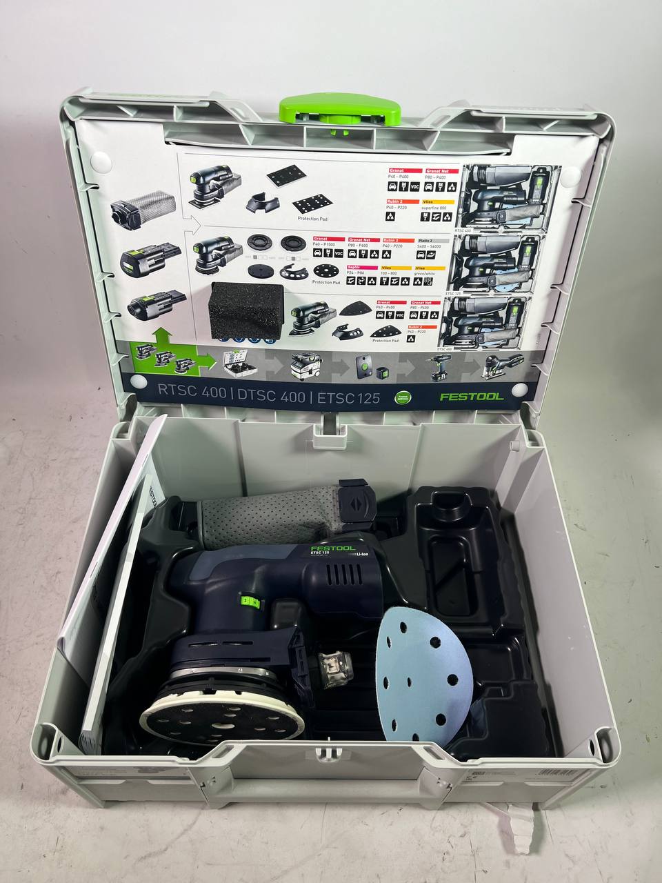 Festool ETSC 125 Basic Levigatrice orbitale a batteria 18V ( 576370 ) + Valigetta Systainer - senza batteria, senza caricabatterie (successore del 201533)