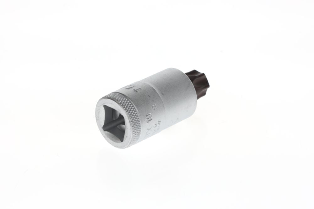 Attacco quadro da 12,5 mm (1/2″) - per viti con profilo TORX® interno - inserto in acciaio al vanadio - lama in acciaio speciale brunito - zigrinatura con scanalatura per il bloccaggio della sfera - DIN 3120 / ISO 1174