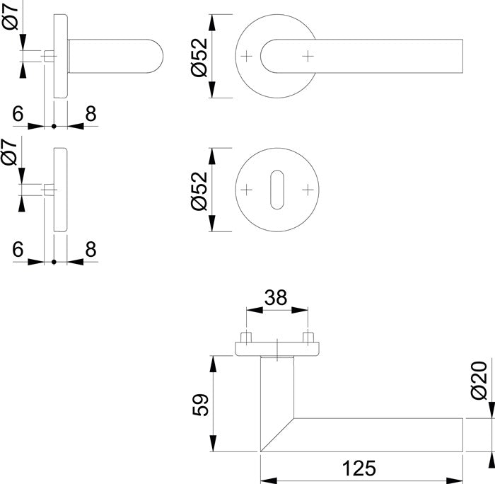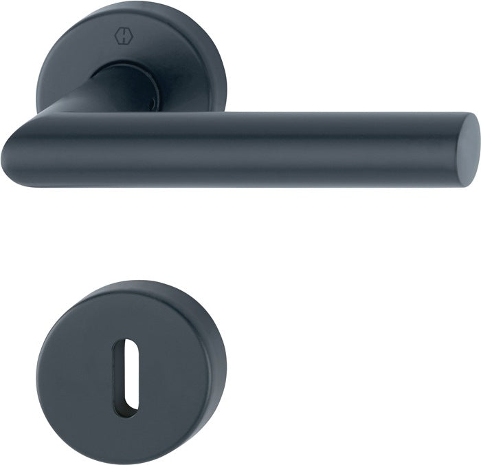 con chiave per porte interne - testato secondo la norma DIN EN 1906: 37-0140A, montaggio per conto terzi - F9714M nero opaco, quadro: 8 mm, con manicotto di spinta/riduzione da 8/8,5 mm - TS = 37 - 42 mm Cuscinetto: Maniglie della porta libere, molle di ritorno utilizzabili a destra/sinistra, cuscinetti a strisciamento esenti da manutenzione Collegamento: Perno rapido HOPPE con perno pieno HOPPE (parte perno/foro) Sottostruttura: Plastica, camme di supporto Fissaggio: Viti nascoste, continue, alternate, multiuso