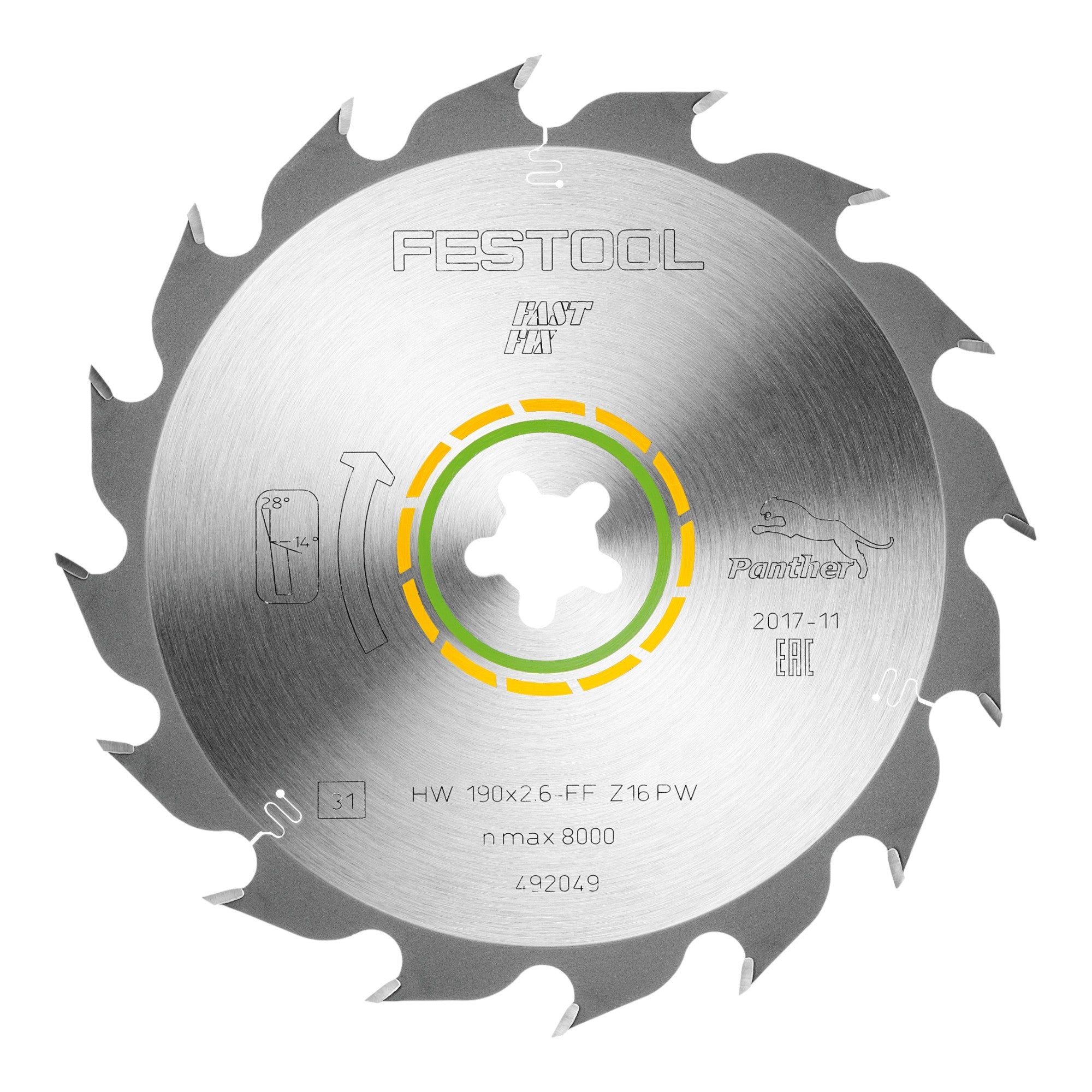 Lama circolare Festool HW 190x2,6 FF PW16 WOOD RIP CUT 2 pz. ( 2x 492049 ) 190 x 2,6 mm 16 denti per tagli longitudinali in legno massiccio in direzione delle venature