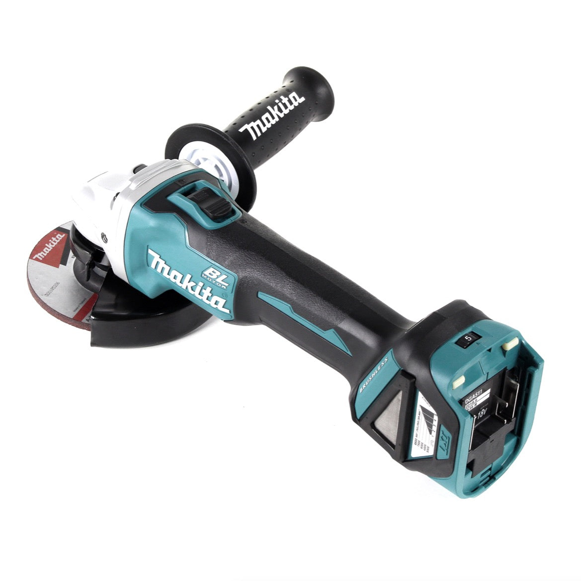 La smerigliatrice angolare Makita DGA 511 ha un motore elettrico brushless (senza spazzole), che permette un utilizzo della batteria ancora più efficiente e un funzionamento con un'usura minima, per una maggior durata di vita utile. La velocità e la coppia vengono automaticamente adattate alla situazione. A tale scopo, la velocità può anche essere regolata manualmente tra i 3000 e gli 8500 giri/min. La smerigliatrice è inoltre dotata di un limitatore di corrente elettronico che protegge il motore dai sovraccarichi, una spia luminosa si illumina e la corrente che scorre attraverso il motore viene ridotta. La smerigliatrice angolare è protetta da polvere e spruzzi d'acqua ed è dotata di un cuscinetto in gomma antiscivolo sull'alloggiamento. La tecnologia AFT (Active Feedback Sensing Technology) spegne il DGA 511 quando il disco si ferma bruscamente per proteggere l'utente. Un display a LED sulla smerigliatrice angolare indica sempre l'attuale livello di carica della batteria.