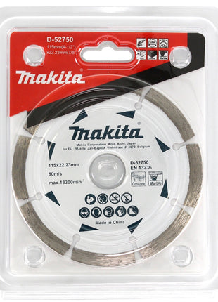 Disco de corte de diamante Makita para hormigón y roca 115 x 22,23 mm paquete de 10 D-52750