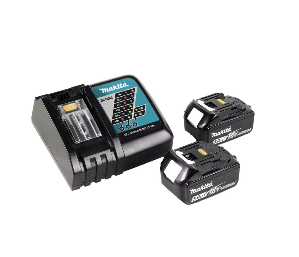 - 2x batería Makita BL 1850 B Li-Ion 18V 5,0 Ah e indicador LED de nivel de carga (197280-8)