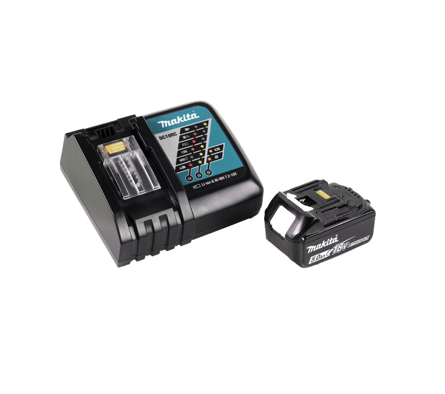 - 1x batería Makita BL 1850 B Li-Ion 18V 5,0 Ah e indicador LED de nivel de carga (197280-8)