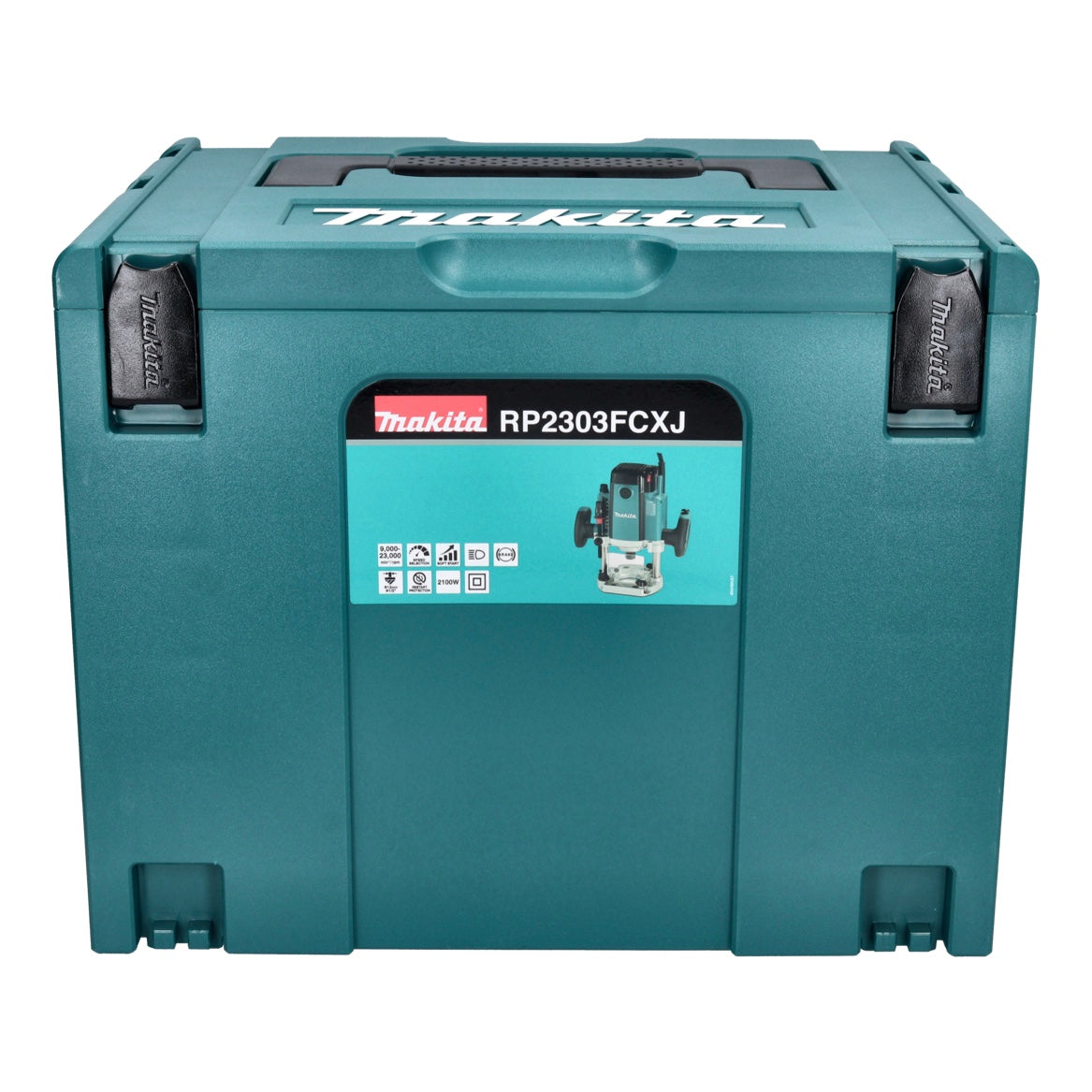 Fresadora Makita RP 2303 FCXJ 2100 vatios carrera 70 mm + tope + set cortador 6 piezas + Makpac