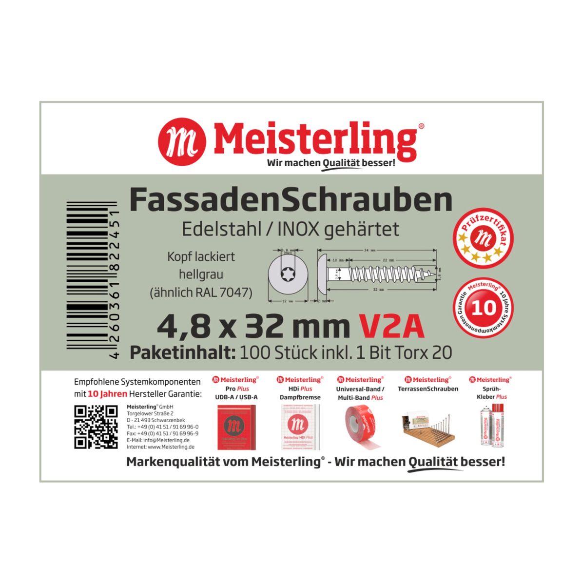 - 100x tornillos para fachada Meisterling 4,8 x 32 mm (010020000121)