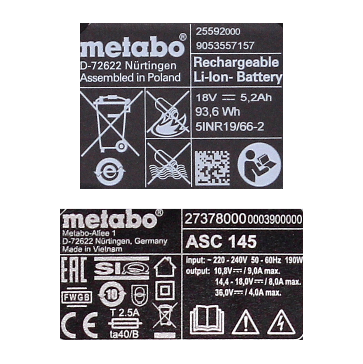 Metabo Basis Set 18V - 3x Batterie da 5,2 Ah + Caricabatterie ASC 145 ( 685048000 )
