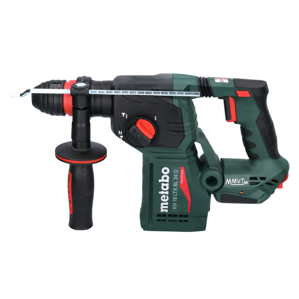 Con il KH 18 LTX BL 24 Q, Metabo offre un martello combinato a batteria estremamente leggero e maneggevole, che può essere collegato a un'unità di aspirazione grazie all'interfaccia di estrazione integrata. Che si tratti di forare, forare a percussione o scalpellare, tutte le applicazioni sono possibili con il KHE 2660 Quick. Il Vario-Tacho-Constamatic ( VTC ) consente di lavorare in modo specifico per il materiale con velocità costante sotto carico. Il sistema Metabo Vibra Tech ( MVT ) garantisce un lavoro sano e senza fatica grazie a uno smorzamento ottimale delle vibrazioni, anche in caso di utilizzo continuo. Grazie alla frizione meccanica di sicurezza, l'azionamento viene disaccoppiato meccanicamente in caso di inceppamento del trapano, per evitare che la macchina si sposti. Metabo ha una lunga tradizione nella fornitura di utensili di tutti i tipi. Metabo è anche membro del Gruppo CAS e dispone quindi di un'ampia gamma di utensili e batterie compatibili di altri produttori.