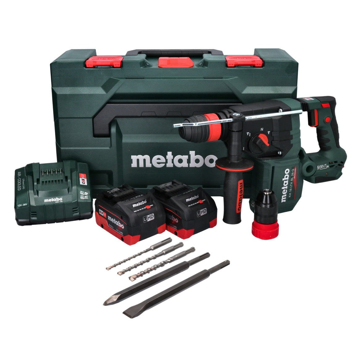 - 1x martello a percussione a batteria Metabo KH 18 LTX BL 28 Q