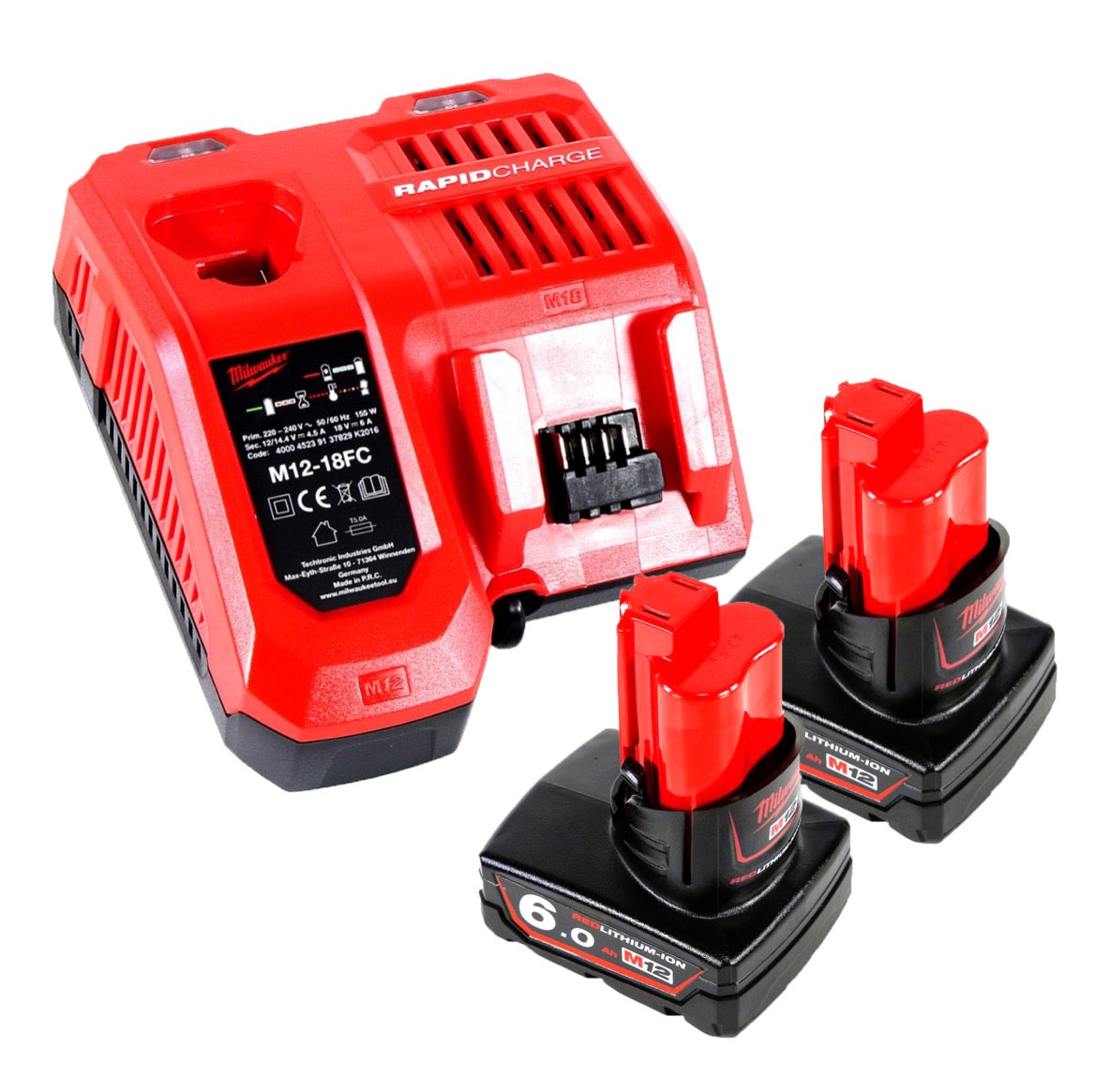 - 2x batería de iones de litio Milwaukee M12 B6 12 V 6,0 Ah (4932451395)