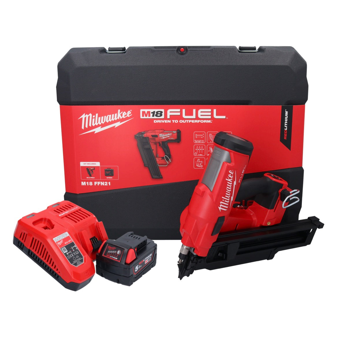 Clavadora a batería Milwaukee M18 FFN21-501C 18 V 50 - 90 mm sin escobillas + 1x batería 5,0 Ah + cargador + estuche