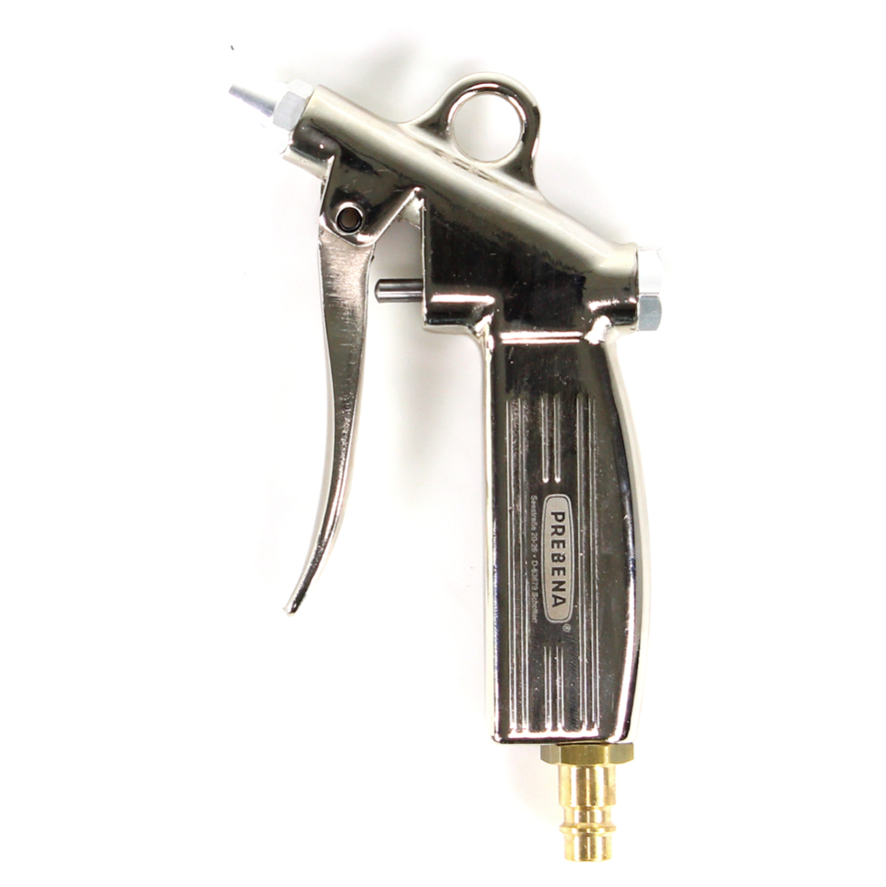 La pratica pistola ad aria compressa Prebena in alluminio con il suo foro stretto è ideale per soffiare e pulire con forza macchine, pezzi in lavorazione, fori e corpi cavi.