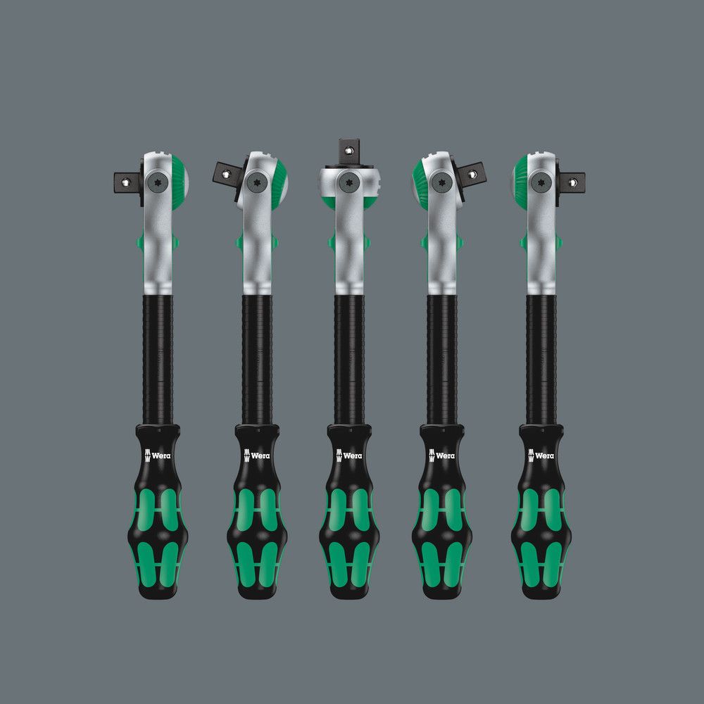 Attacco quadro da 6,3 mm (1/4″) - Cricchetto reversibile girevole con design a volano - Bussole ed elementi di comando - In acciaio CV - Cricchetto in acciaio al cromo-vanadio-molibdeno - Cromato opaco - Cricchetto con commutazione destra/sinistra in ogni posizione - Espulsione dell'utensile a bussola premendo un pulsante o un interruttore scorrevole in ogni posizione Contenuto: 1 cricchetto reversibile girevole (72 denti) 1 punta esagonale SW 5 / 5,5 / 6 / 7 / 8 / 10 / 11 / 12 / 13 mm 1 prolunga con bussola a serraggio rapido 150 mm 1 prolunga oscillante 56 mm 1 pezzo di collegamento con mandrino a serraggio rapido da 6,3 mm (1/4 ″) attacco quadro a 6,3 mm (1/4 ″) attacco esagonale (per l'azionamento di punte di cacciavite con il cricchetto) 1 punta per viti con intaglio a croce (PH) dim. 1 / 2 / 3* 1 bit per viti con impronta a croce (PZD) misura 1 / 2* 1 bit per viti con profilo TORX® interno misura T 10 / 15 / 20 / 25 / 27 / 30* 1 bit per viti con profilo esagonale misura 3 / 4 / 5 / 6 mm (1/4″) 3 / 4 / 5 / 6 mm* * Lunghezza del bit 50 mm ciascuno Vantaggi speciali del prodotto del cricchetto: - design a volano - bussola a sgancio rapido antiscivolo - testa del cricchetto orientabile (posizioni definite a 0°, 15° e 90° a destra e a sinistra)