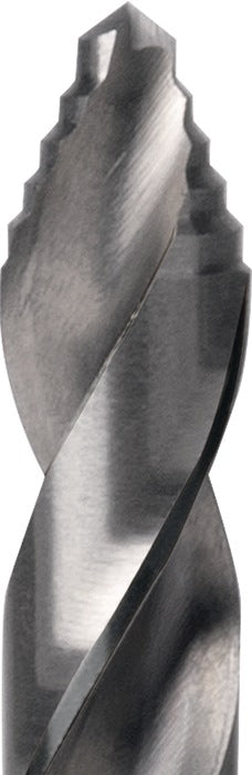 HSS - DIN 338 - punta FLOWSTEP® - angolo di punta 118° - taglio destrorso - gambo a 3 facce - centratura precisa senza punzonatura, anche su superfici tonde come i tubi foratura di grandi diametri senza preforatura - processo di foratura facile e scorrevole, senza inceppamenti nel materiale - il gambo a 3 facce impedisce la rotazione nel mandrino - ideale per l'uso in utensili elettrici portatili - per metalli non ferrosi, acciai strutturali e al carbonio, acciai per utensili, leghe di magnesio, materie plastiche nonché alluminio, plexiglas e legno - con gambo a 3 facce