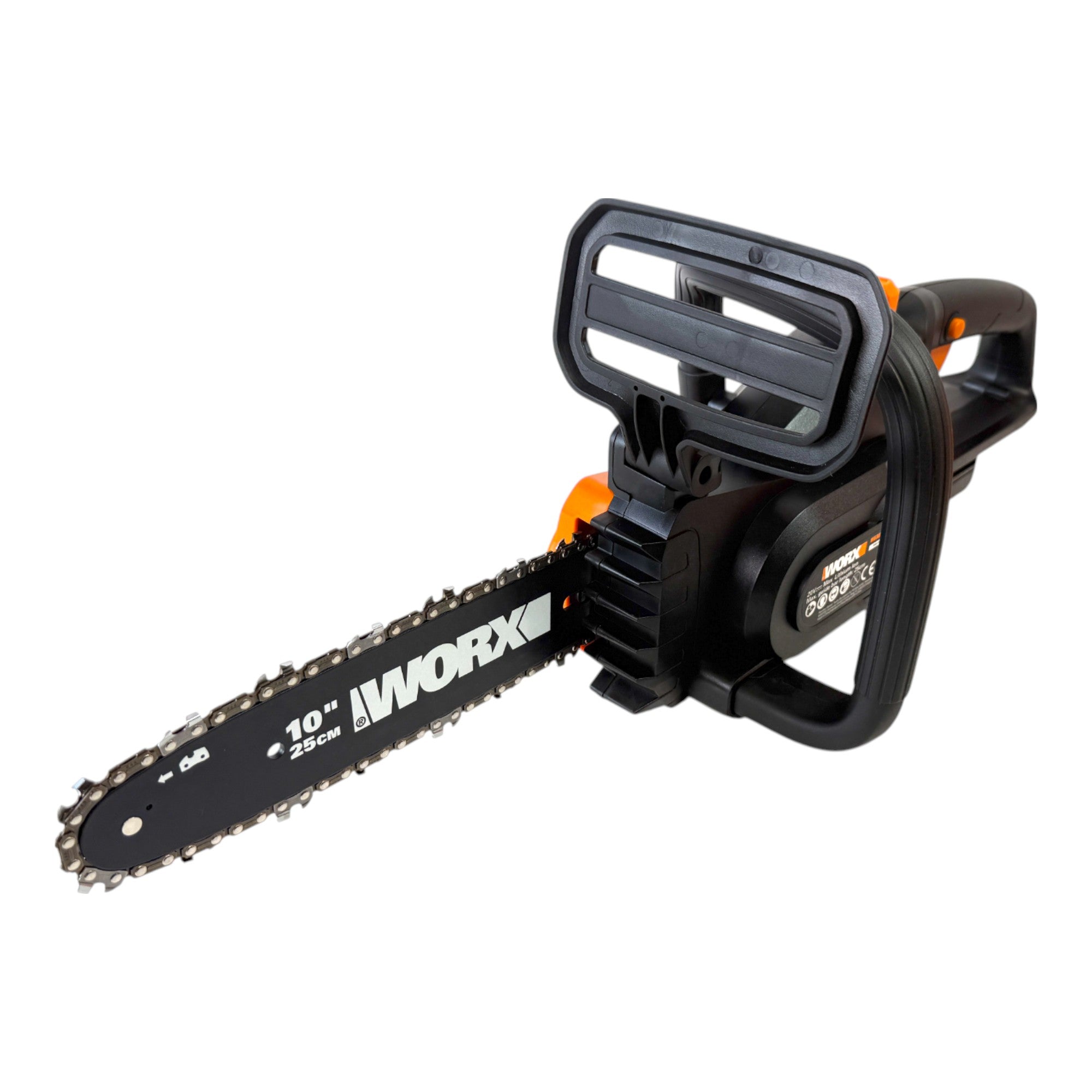 La motosega a batteria Worx WG322E.9 è la soluzione ideale per lavori di taglio rapidi e puliti in giardino, che si tratti di potare alberi, tagliare legna da ardere o ripulire dopo una tempesta. Con la sua lama da 25 cm e il potente sistema a batteria PowerShare da 20 V (batteria e caricabatteria venduti separatamente), offre la potenza necessaria per tagliare senza fatica rami e tronchi fino a 15 cm di diametro, senza emissioni di gas di scarico o grovigli di cavi. Il design compatto ed ergonomico con impugnatura morbida Softgrip anteriore e posteriore garantisce il massimo comfort di utilizzo e consente una facile maneggevolezza anche durante gli impieghi prolungati. Grazie alla lubrificazione automatica della catena e al sistema di tensionamento automatico senza attrezzi, la WG322E funziona in modo affidabile, richiede poca manutenzione e offre prestazioni di taglio ottimali. Essendo parte del sistema WORX PowerShare, la sega è compatibile con tutte le batterie WORX da 18 V/20 V, consentendo di utilizzare in modo efficiente gli accessori già disponibili. Leggera, silenziosa, potente: la WG322E è un attrezzo versatile e indispensabile per ogni giardiniere.