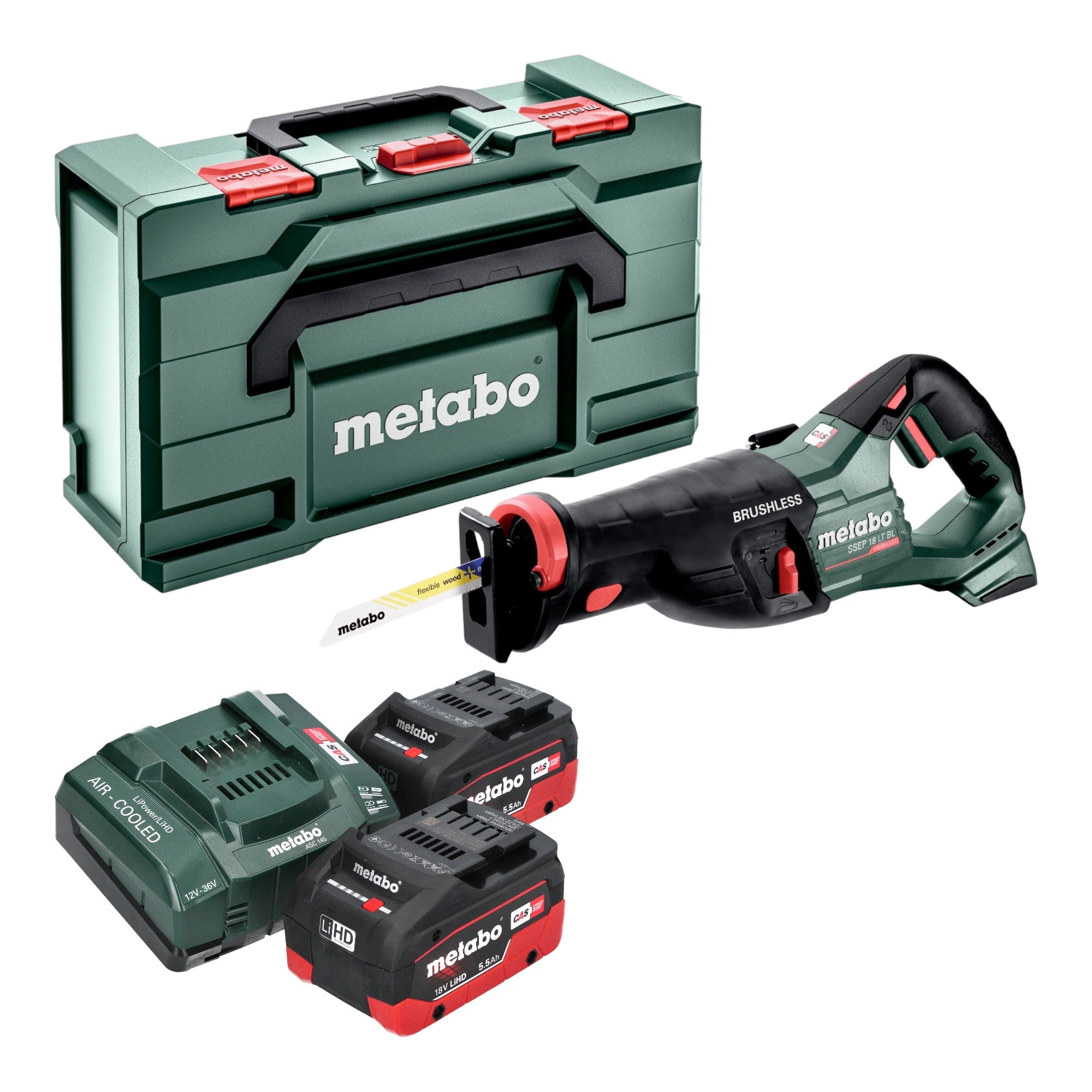 Akumulatorowa pilarka szablasta Metabo SSEP 18 LT BL 18 V 32 mm bezszczotkowa + 2x akumulator LiHD 5,5 Ah + ładowarka + metabox