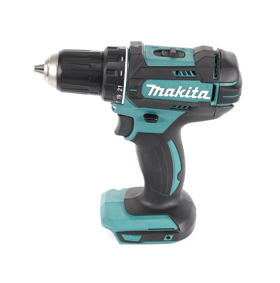 Makita DDF 482 to wydajna wiertarko-wkrętarka akumulatorowa Li-Ion z 2-biegową, w pełni metalową przekładnią planetarną. Moment obrotowy można ustawić idealnie do każdego zastosowania w 21 stopniach, a jasna dioda LED z funkcją poświaty zapewnia optymalną widoczność. Wiertarko-wkrętarka akumulatorowa posiada również zaawansowaną ochronę przed pyłem i bryzgami wody. Hamulce silnika gwarantują większą kontrolę, a także precyzyjne wkręcanie; gumowana, ergonomiczna rękojeść i kompaktowa konstrukcja zapewniają pewny chwyt i wygodną pracę.