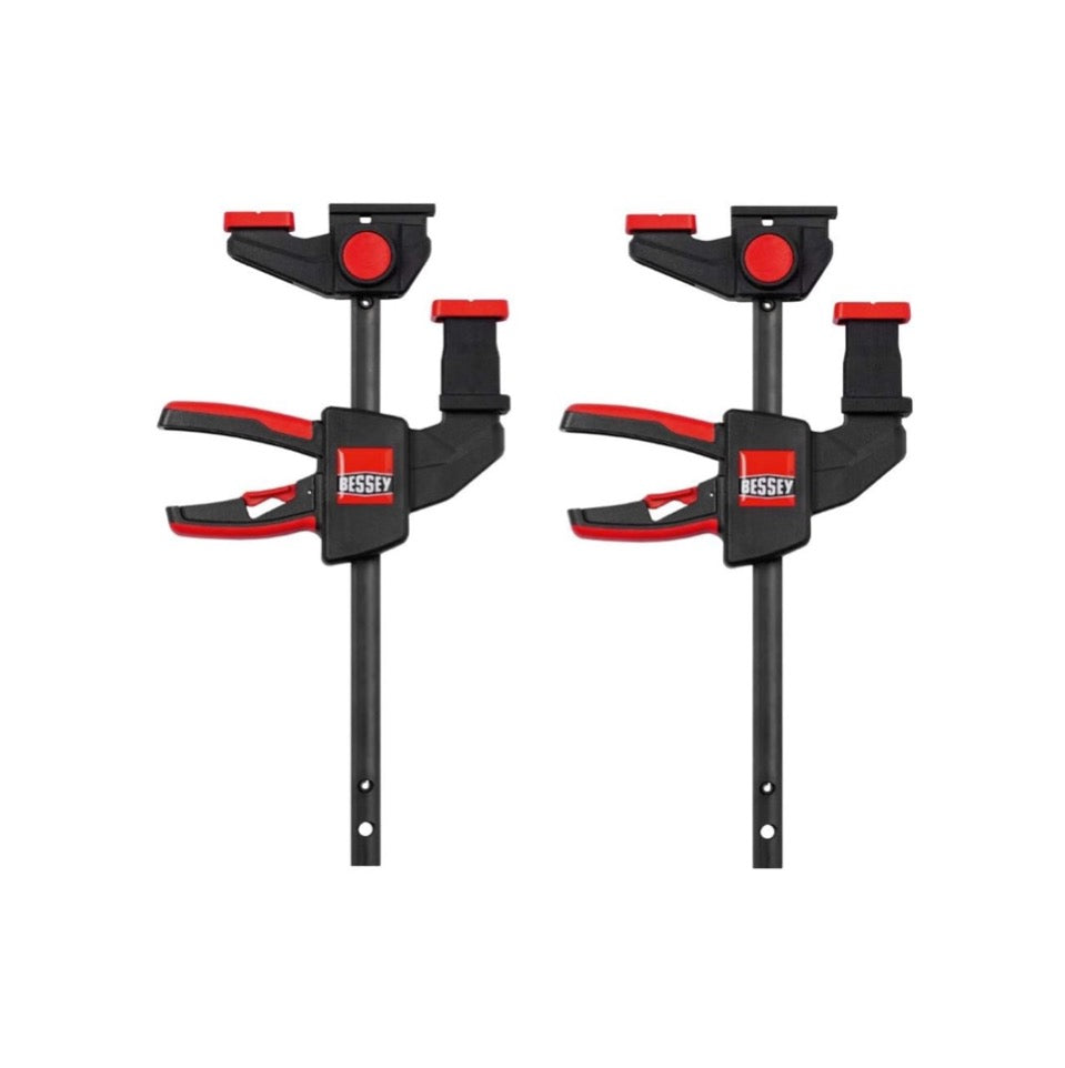 La abrazadera desplegable horizontal Bessey WNS-SET-MFT es la herramienta ideal para usar en mesas multifuncionales como Festool MFT o Sortimo WorkMo. Con una fuerza de sujeción de hasta 750 N, permite sujetar piezas de forma rápida y segura. La abrazadera desplegable tiene una palanca de sujeción colocada en el lateral, lo que permite una fijación rápida y sencilla. Esto significa que se puede procesar toda la superficie de la pieza de trabajo; incluso las piezas redondas o planas no suponen ningún problema. El mecanismo de descenso patentado garantiza que la pieza de trabajo no se despegue de la superficie de la mesa al sujetarla, incluso sin un tornillo de fijación. Esto garantiza una fijación segura y estable. La abrazadera abatible también se puede utilizar como tope universal para piezas de trabajo. El gancho de banco BH-MFT incluido permite una alineación fácil y precisa de las piezas de trabajo. Con la abrazadera abatible horizontal Bessey WNS-SET-MFT estará perfectamente equipado para todos los trabajos en mesas multifuncionales. No importa si desea trabajar en madera, cortar metal o realizar otras fijaciones, con esta herramienta siempre tendrá una fijación fiable y segura. La abrazadera de mesa con una sola mano EZR 15-6SET de Bessey es perfecta para fijar rieles guía de varias marcas. Ya sea Protool, Metabo, Makita, Hitachi/Hikoki o Dewalt, con esta práctica herramienta estará bien equipado. Las dimensiones de las ranuras varían de 12 x 6,5 mm a 12 x 8 mm. Pero no solo eso, la abrazadera de mesa con una sola mano EZR 15-6SET también es ideal para sujetar perfiles y mesas de trabajo. Gracias a su elevada fuerza de sujeción de hasta 750 N, podrá fijar fácilmente las piezas de trabajo con firmeza. El mango de esta abrazadera de mesa tiene una forma ergonómica y está fabricado de plástico de 2 componentes. La palanca de la bomba detrás del riel garantiza un fácil manejo. Otra ventaja de la abrazadera de mesa monomanual EZR 15-6SET es el adaptador deslizante, que permite utilizar carriles guía de Bosch, Flex y Mafell con dimensiones de ranura de 12 x 1,8 mm. Ya sea para sujetar, extender o fijar, la abrazadera de mesa con una sola mano EZR 15-6SET de Bessey es una herramienta versátil que debería estar en todos los talleres. Compruebe usted mismo la alta calidad y funcionalidad de esta abrazadera de mesa. El elemento de sujeción Bessey TW20-15-8-KLI es una herramienta indispensable para su mesa multifuncional como Festool MFT o Sortimo WorkMo. Con una fuerza de sujeción de hasta 500 N, podrá fijar fácilmente las piezas de trabajo y trabajar de forma segura. El elemento de sujeción se adapta a mesas multifuncionales con un diámetro de orificio de 20 mm y un espesor de placa de al menos 19 mm. Esto lo hace compatible con una variedad de mesas y le permite usarlo de manera flexible. El elemento de sujeción Bessey dispone de un soporte deslizante estable de magnesio ligero. Esto significa que se puede tensar rápida y fácilmente y garantiza una fijación a prueba de vibraciones. El soporte deslizante le permite trabajar cómodamente y mantiene la pieza de trabajo en su lugar de manera confiable. El perfil del elemento de sujeción está fabricado en acero de calidad estirado en frío. Esto permite una tensión elástica y elástica, lo que aumenta la seguridad y la estabilidad de su trabajo. Ya sea aserrando, rectificando o fresando, el elemento de sujeción de Bessey garantiza que su pieza de trabajo quede fijada de forma firme y segura. El elemento de sujeción Bessey TW20-15-8-KLI se entrega en un embalaje de autoservicio y está listo para su uso inmediato. ¡Haga su pedido hoy y experimente resultados perfectos cuando trabaje en la mesa multifuncional!