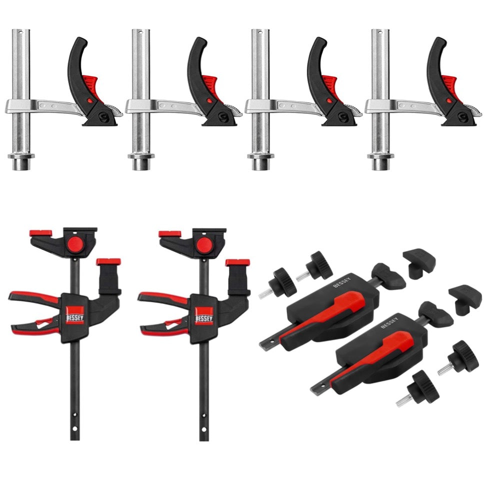 Bessey MFT-SET-A Juego de 14 piezas para fijación y sujeción en mesas multifuncionales para fijar de forma segura rieles guía
