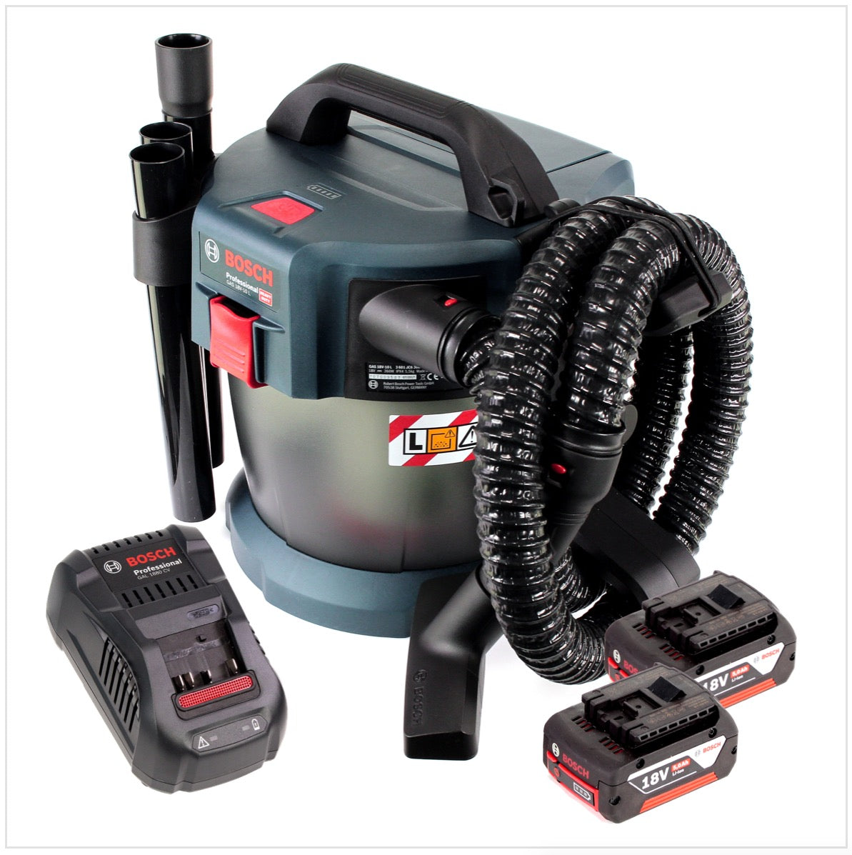 Bosch GAS 18V-10 L Professional Aspiradora en seco y húmedo a batería + 2x Batería GBA 5,0 Ah + Cargador GAL 1880 CV