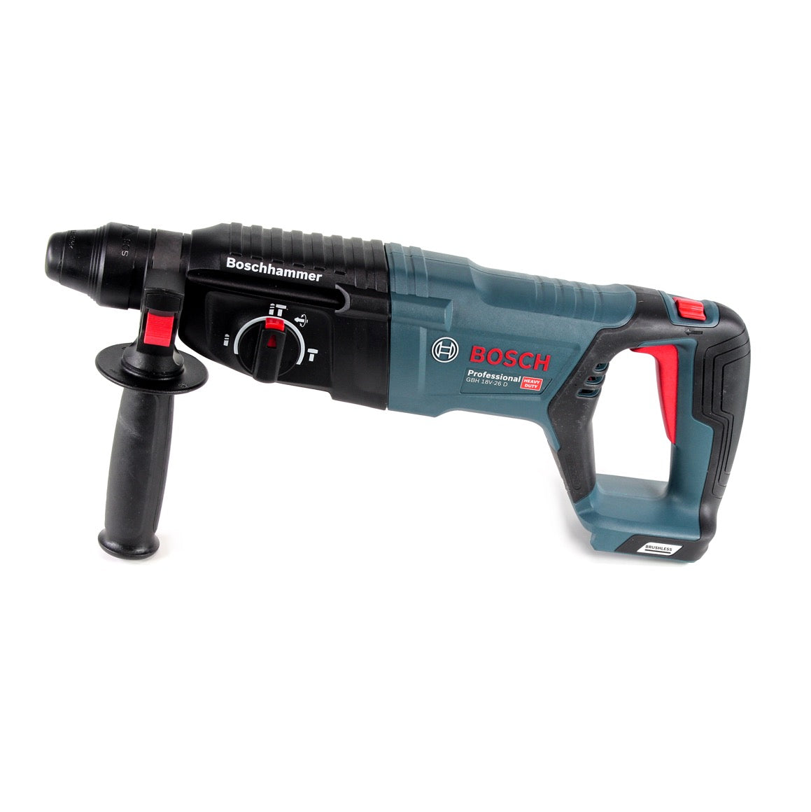 El taladro percutor a batería GBH 18V-26 D Professional con mango en D es el todoterreno ideal de la categoría SDS plus de Bosch y ofrece el máximo rendimiento, especialmente en aplicaciones de taladrado y cincelado vertical. Con 2,5 julios de energía de impacto de su motor sin escobillas que no requiere mantenimiento, el dispositivo proporciona energía inalámbrica que iguala el rendimiento con cable de los martillos Bosch establecidos. Como primer taladro percutor inalámbrico con mango en D y KickBack Control, la herramienta combina un manejo flexible y una mayor protección para el usuario. Su brillante luz LED para iluminar zonas de trabajo oscuras, su gran interruptor fácil de usar y su mango en D, especialmente práctico al cincelar, contribuyen a un trabajo cómodo. Este martillo en D es adecuado para taladrar y cincelar hormigón y mampostería. El GBH 18V-26 D Professional también dispone de función de cincel, embrague de sobrecarga, velocidad variable y Vario Lock.