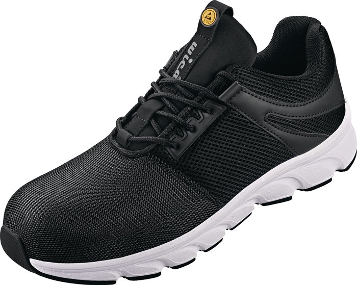 zgodnie z normą EN ISO 20345 - S1P ESD SRA - szerokość buta: 10,5 - cholewka wykonana z materiału tekstylnego - ergonomicznie ukształtowany, wyściełany brzeg cholewki wykonany z materiału syntetycznego - przyszyty, wyściełany język wykonany z materiału tekstylnego - zapięcie na elastyczne tekstylne oczka - wyjmowana, anatomiczna wkładka - podnosek z włókna szklanego i odporna na przebicie podeszwa środkowa z tkaniny - antystatyczna, odporna na oleje i kwasy, antypoślizgowa i super lekka podeszwa zewnętrzna EVA/guma - sportowa podeszwa zewnętrzna - całkowicie wolna od metalu - obszar zastosowania: magazyn, spedycja, przemysł itp. dostępne również w rozmiarach od 36 do 48 na zamówienie