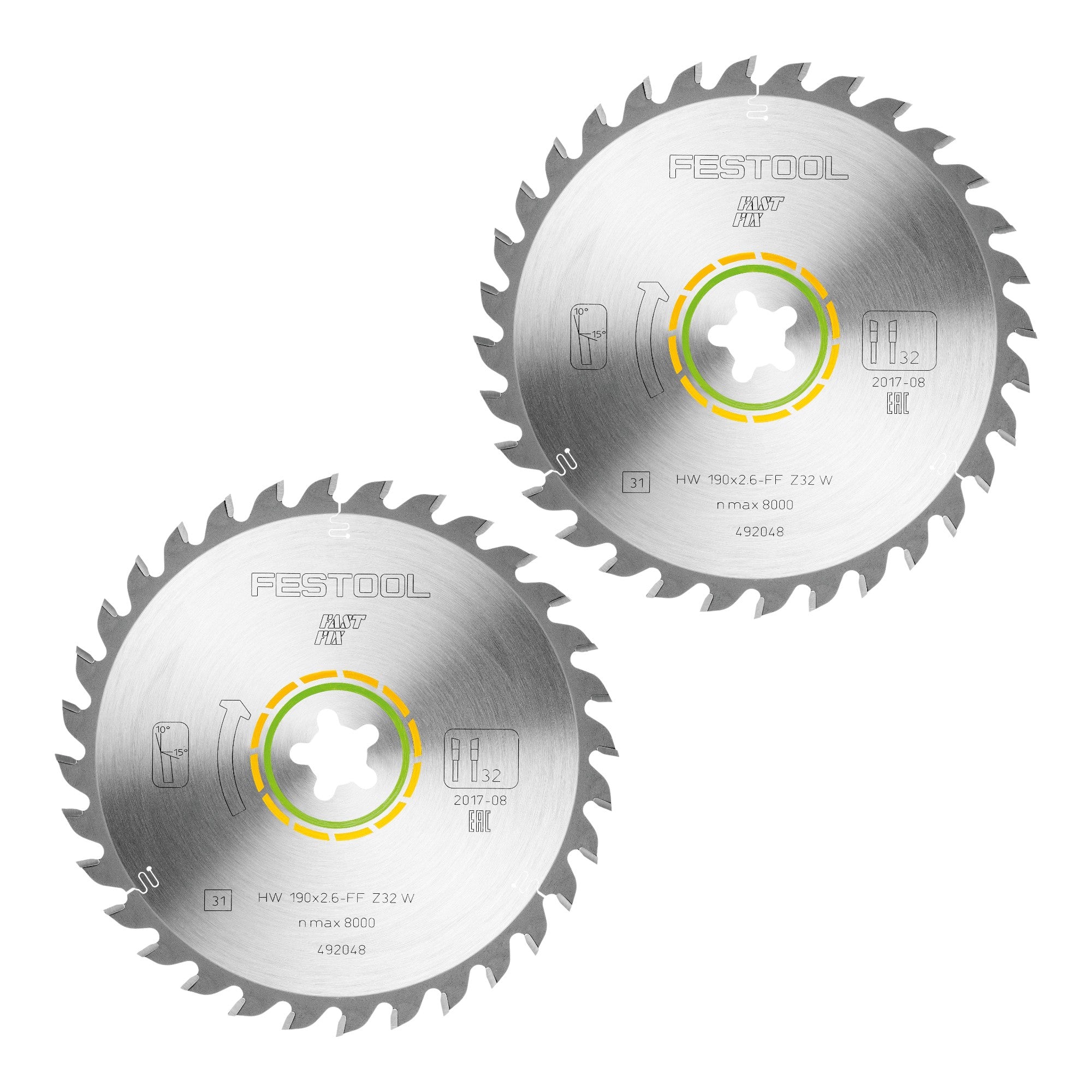 Festool HW 190x2,6 FF W32 piła tarczowa WOOD UNIVERSAL 2 szt. ( 2x 492048 ) 190 x 2,6 mm 32 zęby do wszystkich rodzajów drewna, materiałów drewnopochodnych, płyt budowlanych, płyt gipsowo-włóknowych, miękkich tworzyw sztucznych