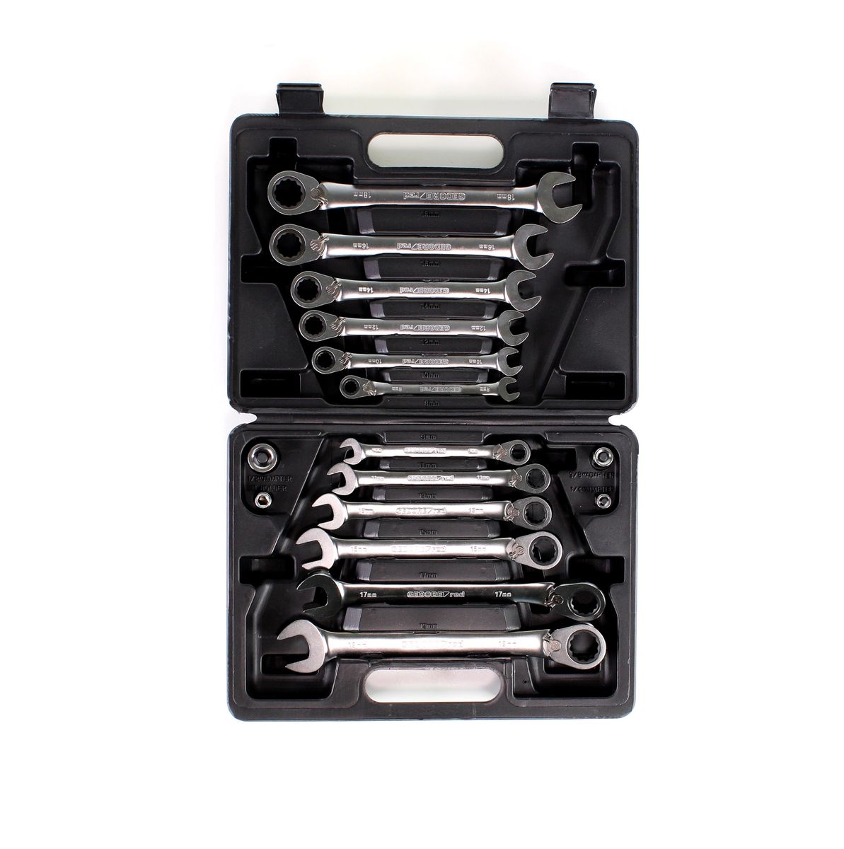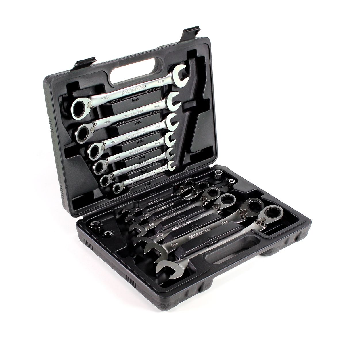 - 1x Juego de llaves de trinquete combinadas Gedore Red 15° SW 8-19 mm de 16 piezas. (R07203016) Acero CrV en caja