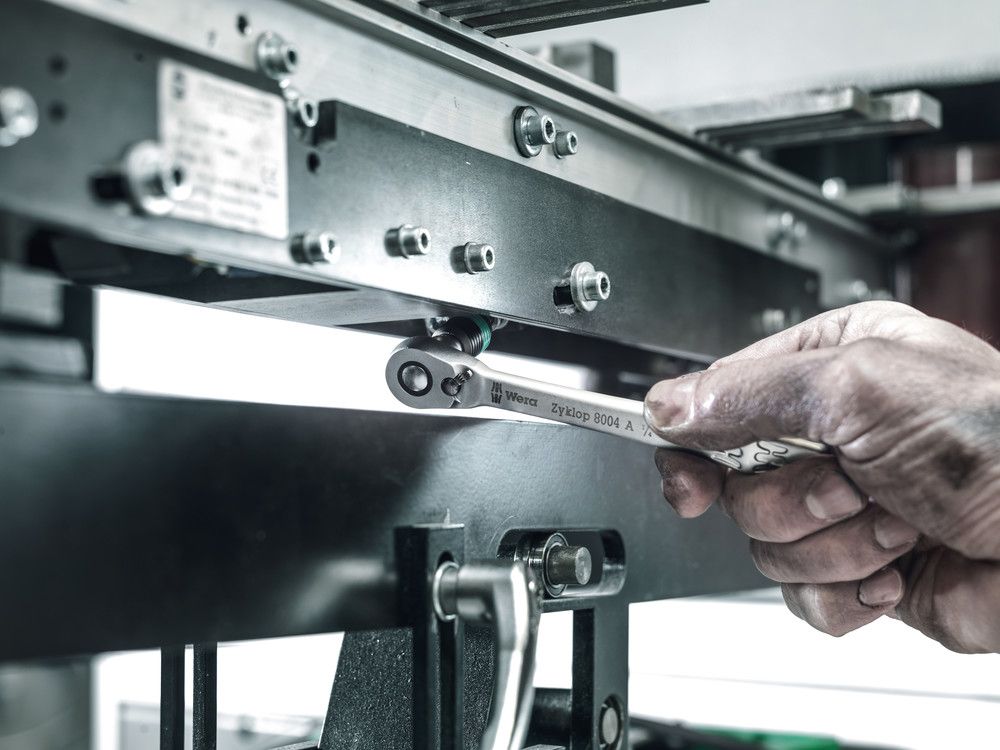 napęd kwadratowy 6,3 mm (1/4″) - solidna, drobnozębna, kuta grzechotka metalowa - wykonana ze stopowej stali narzędziowej - funkcja blokady nakrętki z przyciskiem zwalniającym - smukła konstrukcja - długa dźwignia - (idealna również do bardzo ograniczonych przestrzeni roboczych) - kąt obrotu do tyłu 5° 72 zęby