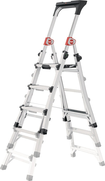 Aluminium - teleskopowa drabina do pracy na różnych wysokościach - 3, 4 lub 5 stopni do wchodzenia i podpierania - kombinacja stopni i szczebli - może być używana na schodach, maks. regulacja stopnia 440 mm - bardzo duża platforma do stania, szer. 299 x gł. 275 mm - półka do przechowywania puszek o różnych rozmiarach - oszczędność miejsca - maks. obciążenie całkowite 150 kg