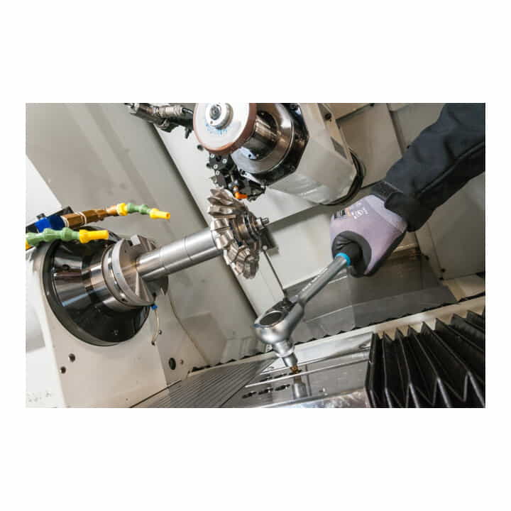 napęd kwadratowy 12,5 mm (1/2″) - z 2-komponentową rękojeścią - nadaje się również do pracy w ciasnych przestrzeniach montażowych - test VPA, statyczny moment obrotowy zgodnie z DIN 3122: 1000 Nm - kąt obrotu 4° 90 zębów DIN 3122 / ISO 3315