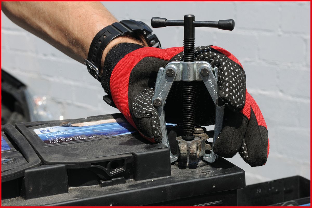 Desconectador universal de terminales de batería de 2 brazos con mando, M10x60 mm - Extractor universal de bornes y brazos de limpiaparabrisas, 2 garras
