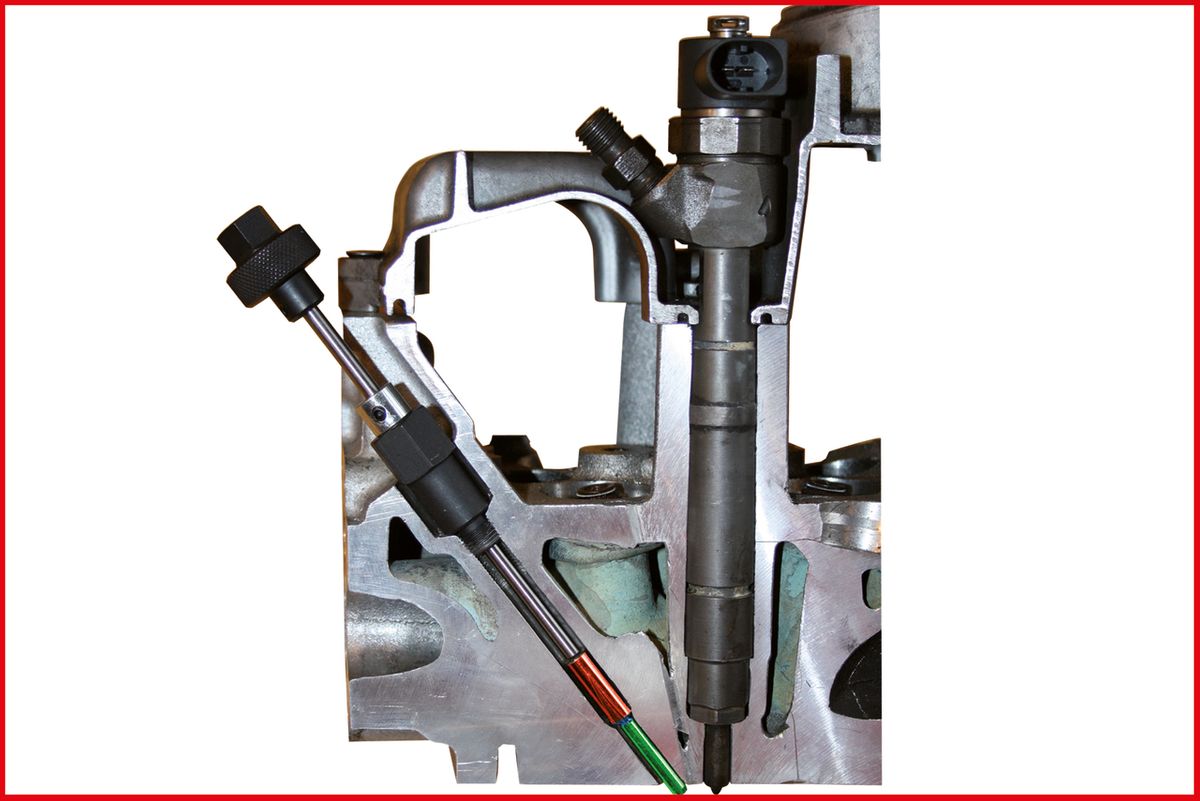 • La geometría especial del escariador limpia el alojamiento de bujía de incandescencia, el asiento de estanquidad y el canal de la varilla calentadora en un solo paso